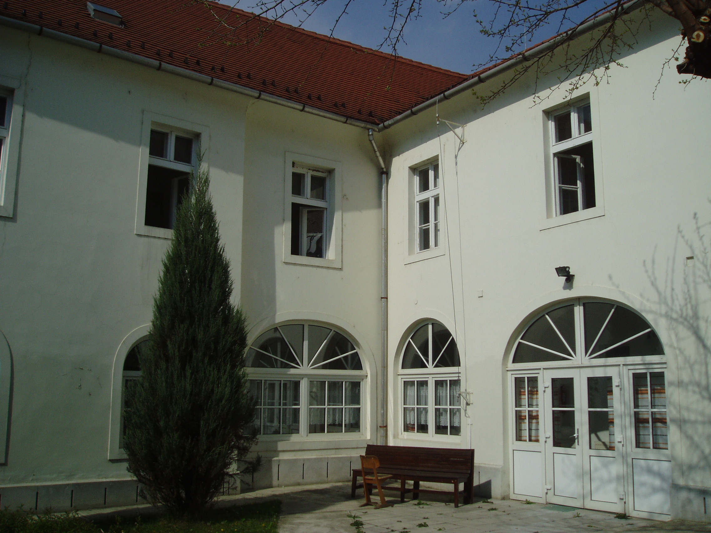 Nyilvános 1066 | 1672 | Pápa, Petőfi utca 13. Ókollégium | A híres pápai Református Kollégium első épülete 1531 és 1752 között a mai Ruszek közben, a Lábasház épületének helyén állott. 1752-ben - Mária Terézia rendeletének következtében - harminckét évig csak a közeli Adásztevelen működhetett. 1784-ben, II. József türelmi rendeletének köszönhetően térhetett vissza az iskola Pápára, s hamarosan felépült a később Petőfi Sándorról elnevezett utcában a most látható épület, amelyben 1794-ben indulhatott meg az oktatás. A jelentős tömegű, szögben megtörő késő barokk épület kimagaslik az utca XVIII-XIX. századi alacsony épületei közül. Homlokzatkiképzése egyszerű. Az épületbelsőben hangulatos, szűk folyosók és boltozatos szobák idézik a régi diákélet hangulatát. A főbejárat felett emléktábla örökíti meg egykori híres tanárainak és tanulóinak nevét. Az épületben tanított Mándi Márton István professzor. Ő volt az első Magyarországon, aki Kant filozófiáját - ebben az épületben - tanította. Az ő neéhez fűződik az adászteveli száműzetés után az iskola nagy fellendülése. A XIX. században híres tanárai voltak Tarczy Lajos és Bocsor István. Tarczy hirdette először Magyarországon katedráról a hegeli eszméket, amiért később le is kellett mondania a filozófia tanszékről. Ő volt a híres Képzőtársaság (az iskola önképzőköre) első elnöke. Egyénisége maradandó hatással volt irodalmunk számos későbbi kiválóságára, Petőfire, Jókaira, Eötvös Károlyra. (Lásd még: Pápa, Alsóvárosi temető; Pápa, Jókai u. 26.). Bocsor István 1837-től tanított itt. Magyar nyelvű történelemórái a város közönségére is nagy hatást gyakoroltak. A szabadságharc bukása után visszavonultan, tanári munkásságának élt. Alakját Kozma Andor: A karthágói harangok c. versében örökítette meg. (Lásd még: Pápa, Alsóvárosi temető; Pápa, Széchenyi u. 10.). Jeles tanár volt rajtuk kívül Váli Ferenc, Jókai Mór sógora (lásd még: Pápa, Alsóvárosi temető; Pápa, Jókai u. 20.). Ide járt iskolába az 1841/42-es tanévben Petőfi Sándor és Jókai Mór. Különösen Petőfi életében jelentett döntő momentumot az itt eltöltött időszak (lásd még: Pápa, Petőfi u. 11., Pápa, Jókai u. 13.). Az épületben tanult még Orlai Petrich Soma, Thaly Kálmán, Eötvös Károly, Kozma Sándor és mások. Az intézmény 1857-ig működött ezen a helyen, ekkor átköltözött a Március 15. tér 13-15. számú házba, az ún. Nátus-ba, majd 1895-ben utolsó végleles helyére, a Március 15. tér 9. számú monumentális épületébe. Az egykori Ókollégium ma (2007) gimnazista lányok diákotthona. Itt található a pápai születésű (lásd: Pápa, Március 15. tér 8.) Rab Zsuzsa költő és a Pápán is diákoskodott Hegyi Imre néprajztudós könyvtára. Rab Zsuzsa még életében adományozta könyvtárának jelentős részét a pápai alma maternek, míg Hegyi Imre könyvtára özvegye révén került a Református Gimnázium tulajdonába. A fénykép 2007 áprilisában készült. Felh. irod.: Németh Adél - Szabó Lajos: Pápa. Bp. Panoráma, 1989 Pápa. Szerk. Sz. Farkas Aranka. 2. kiad. Veszprém - Bp., Magyar Képek, 2000 |