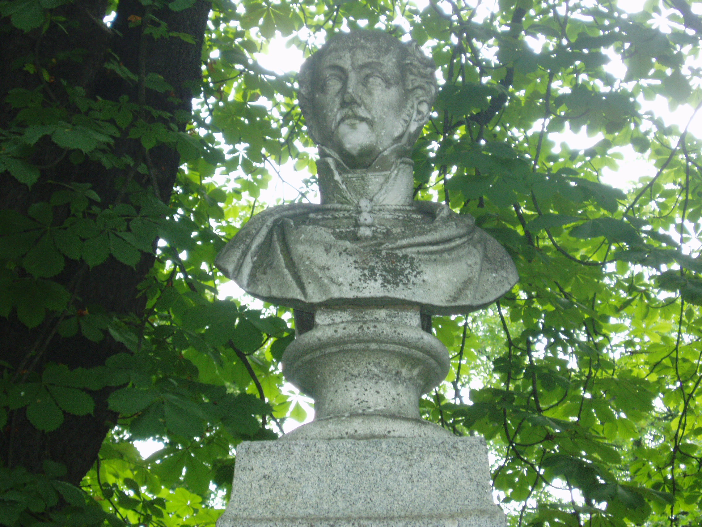 Nyilvános 1067 | 2146 | Sümeg, Népkert: Kisfaludy Sándor mellszobra | A Püspöki palotától (lásd: Sümeg, Szent István tér 10.) délkeletre terül el a Népkert, amely annakidején a palota díszkertje volt. A Népkert Kisfaludy tér felé eső részén, közel Kisfaludy Sándor szólőházához (lásd: Sümeg, Kisfaludy tér 2.) állította fel Zala vármegye 1880 körül a költő mellszobrát, Gerenday Antal alkotását. A fénykép 2007 júniusában készült. Felh. irod.: Koppány Tibor - Kozák Károly: Sümeg útikalauz. Veszprém, Idegenforgalmi Hivatal, 1965 Látnivalók Veszprém megyében. Miskolc, Well-PRess, 2004 Sümegi kalauz. Sümeg, Sümegi Fórum alapítvány, 1993 |