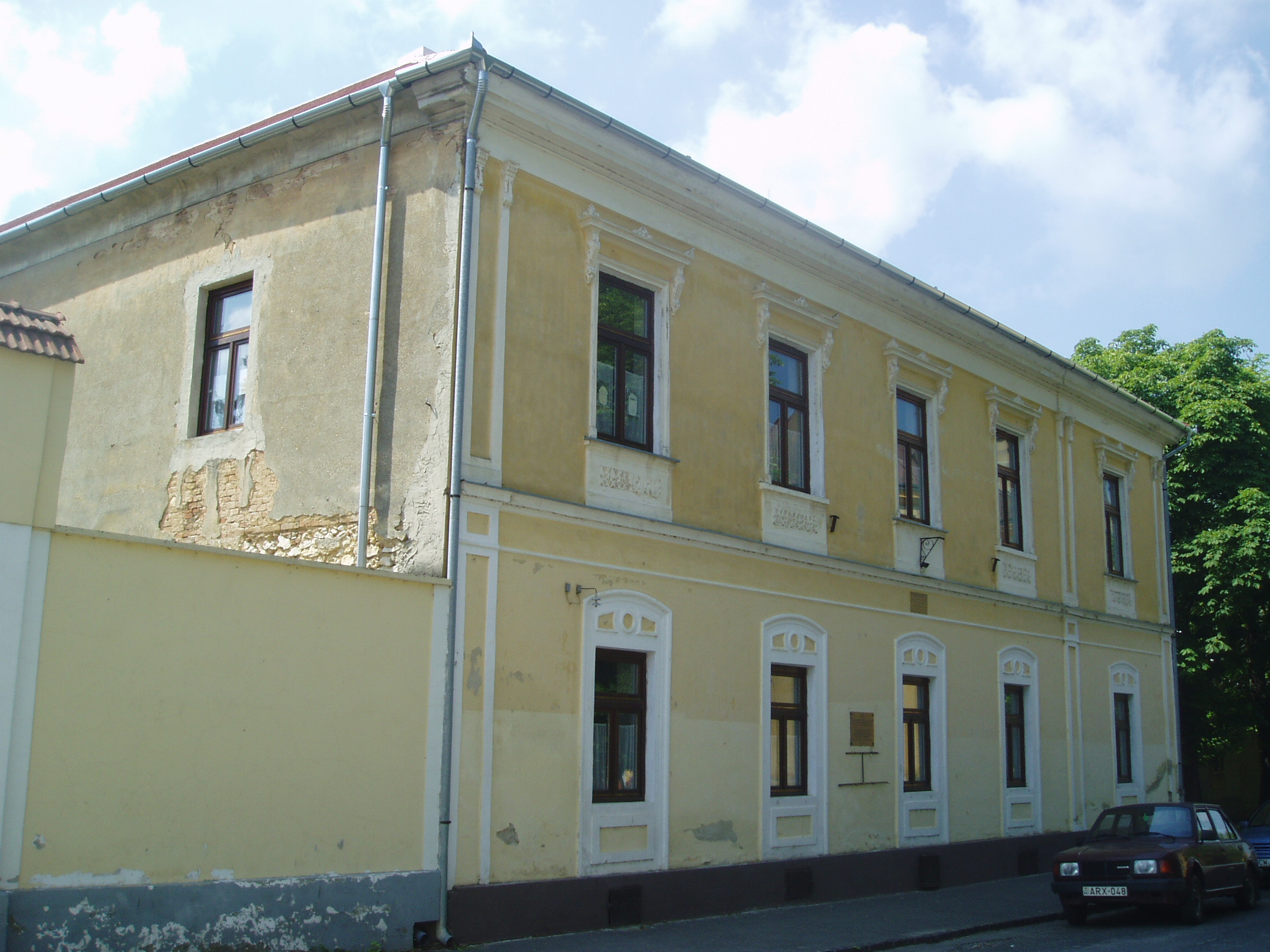 Nyilvános 1052 | 1831 | Sümeg, Ramassetter utca 10. | A Ramasetter utca házai jórészt a XVII. század második felében épültek, bár a legtöbbet később átalakították. A 10. számú épület is barokk stílusú, földszintes ház volt eredetileg, amelyre később emeletet építettek, s homlokzatát eklektikus stílusban átalakították. Az épület homlokzatán olvasható emléktábla szerint ebben a házban élt és halt meg Ramassetter Vince, "Sümeg atyja". Ramassetter Vincének a városban egészalakos szobra (lásd: Sümeg, Kossuth u. 13.) és több emléktáblája is látható, köztük a közelben álló szülőházán is (lásd: Sümeg, Deák F. u. 6.). A város jótevője a helyi köztemetőben nyugszik (lásd: Sümeg, Temető: Ramassetter Vince sírja). A fénykép 2007 júniusában készült. Felh. irod.: Koppány Tibor - Kozák Károly: Sümeg útikalauz. Veszprém, Idegenforgalmi Hivatal, 1965 Veszprém megyei életrajzi lexikon. Veszprém, Veszprém Megyei Önkormányzat Közgyűlése, 1998 www.ekmk.hu/emlekhely/Emlekhelyek.html |