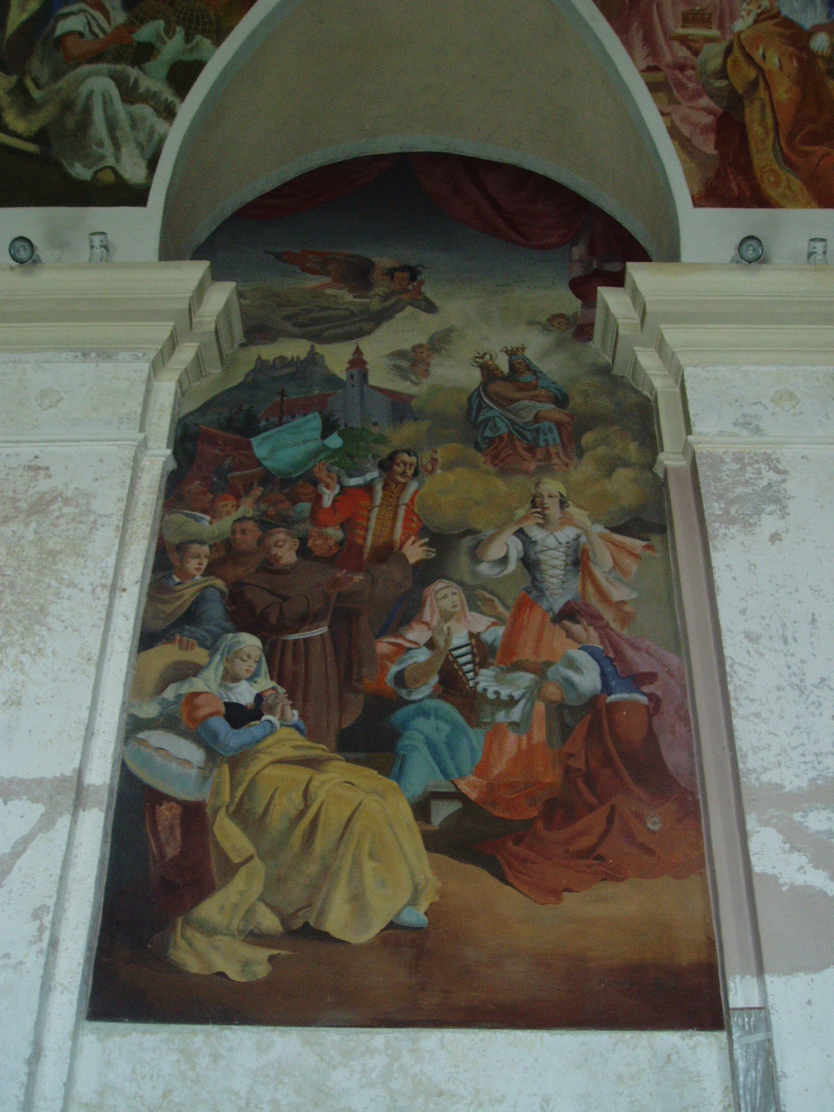 Nyilvános 1074 | 2161 | Sümeg, Szent István tér 7. Ferences templom | A ferences kolostor és templom épülettömbje a vár után (lásd: Sümeg, Vár) Sümeg legrégibb műemléke. A ferences atyákat a XVII. közepén Széchenyi György püspök hozta Sümegre a török elől idemenekült lakosság kedvéért. 1649 körül először az egyhajós, akkor még torony nélküli templom épült meg. A hozzá tartozó vastag falú, erődítmény jellegű kolostor néhány évvel később lett készen. A templom tornya és két oldalkápolnája 1724-33 között épült. Kiemelkedő értéket képvisel a két oldalkápolna kovácsoltvas kapuzata. (Sajnos, a templomot kívülről nem tudtam lefényképezni, szinte teljesen eltakarják a lombok. Talán majd egyszer télen... K. K.) Itt működött a XVII. századi ellenreformáció egyik fontos dunántúli központja. A szerzetesek járták a végvárakat és falvakat, s fejtettek ki térítő, illetve szociális tevékenységet, a kolostorban pedig messze vidéken híres hitvitákat tartottak. A lakosság kedvelte a ferences atyákat, akik a szegénység vállalása mellett a tudomány művelői, egyes tagjaik pedig a haza védelmében vitéz kardforgatók voltak. A templomot 1699 óta kegytemplomként is számon tartják. Ebben az évben ugyanis itt gyógyult meg a bécsi Berghoffer Mária, s a gyógyulást a templom főoltárán elhelyezett, a XVI. század elején faragott Pieta-szobornak tulajdonították. A képen e csodás gyógyulást ábrázoló újabb kori festmény látható. E szobor, mely a XVIII. században lebontott Szent Katalin-templomból származik, tűzvész következtében többször is megsérült, s helyreállításra szorult. A fénykép 2007 júniusában készült. Felh. irod.: Koppány Tibor - Kozák Károly: Sümeg útikalauz. Veszprém, Idegenforgalmi Hivatal, 1965 Látnivalók Veszprém megyében. Miskolc, Well-PRess, 2004 Sümegi kalauz. Sümeg, Sümegi Fórum alapítvány, 1993 Hőgyész László: Sümeg évszázadai. Veszprém, 1989 |