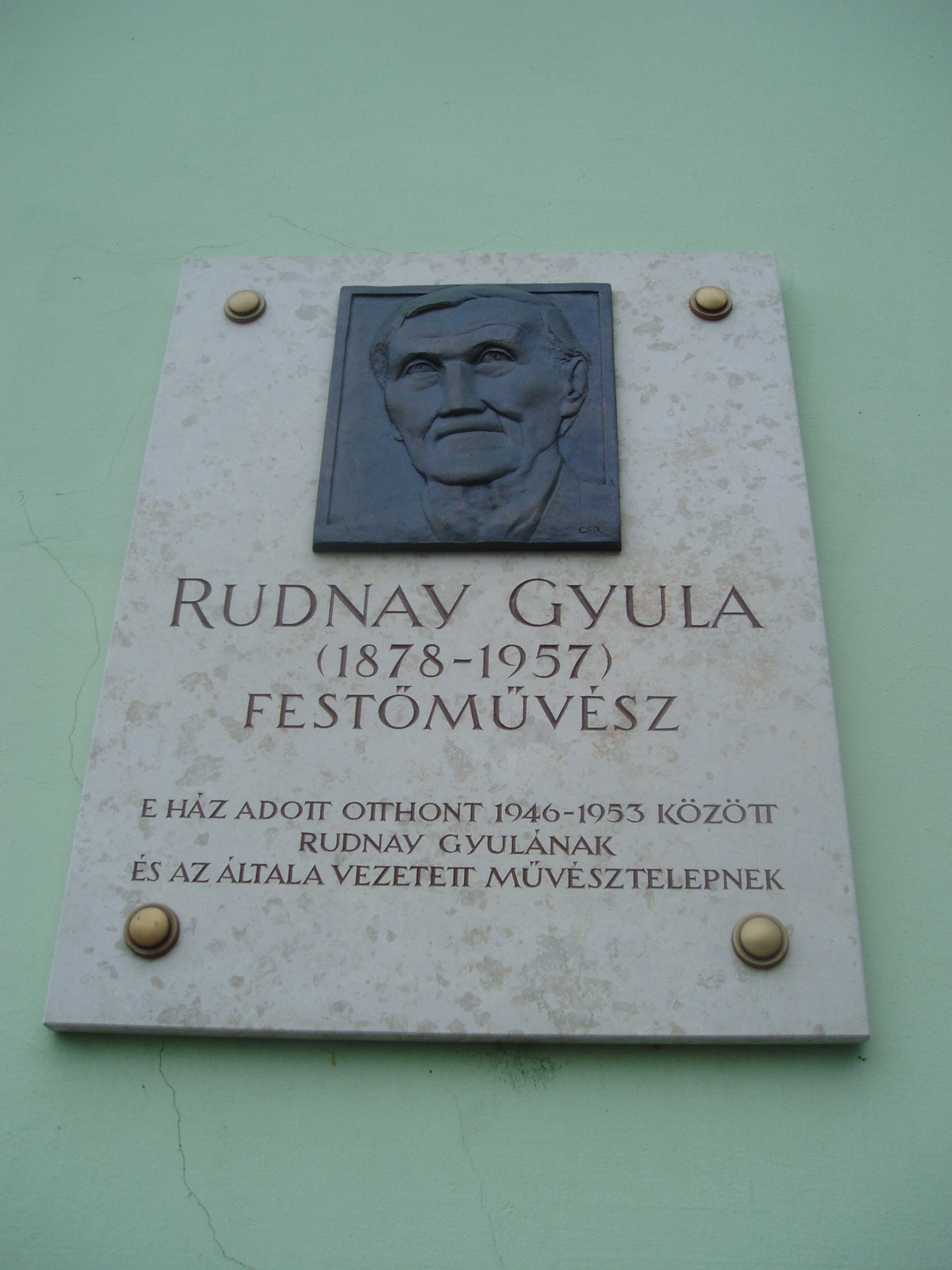 Nyilvános 1402 | 3027 | Baja, Arany János utca 1. | Az egykori Vojnich-kúria 1820 körül épült klasszicista stílusban. Amint a omlokzaton elhelyezett portrédomborműves emléktáblán is olvasható, 1946 és 1953 között ez az épület adott otthont a Rudnay Gyulának és az általa vezetett művésztelepnek. A kúria ma a Nagy István Baján élt (lásd: Baja, Nagy István u. 8.) festőről elnevezett képtár otthona. A XX. századi modern magyar képzőművészet reprezentánsait bemutató gyűjteményben külön egységet képeznek az ő alkotásai. A kiállítás másik nagy gyűjteménye Rudnay Gyula festőművész munkásságát, bajai iskolateremtő tevékenységét mutatja be. Itt látható az Oltványi Imre műgyűjtő által a múzeumnak adományozott modern képzőművészeti anyag is. A fénykép 2007 októberében készült. Felh. irod.: Látnivalók Bács-Kiskun megyében. Miskolc, Well-PRess, 2002 |