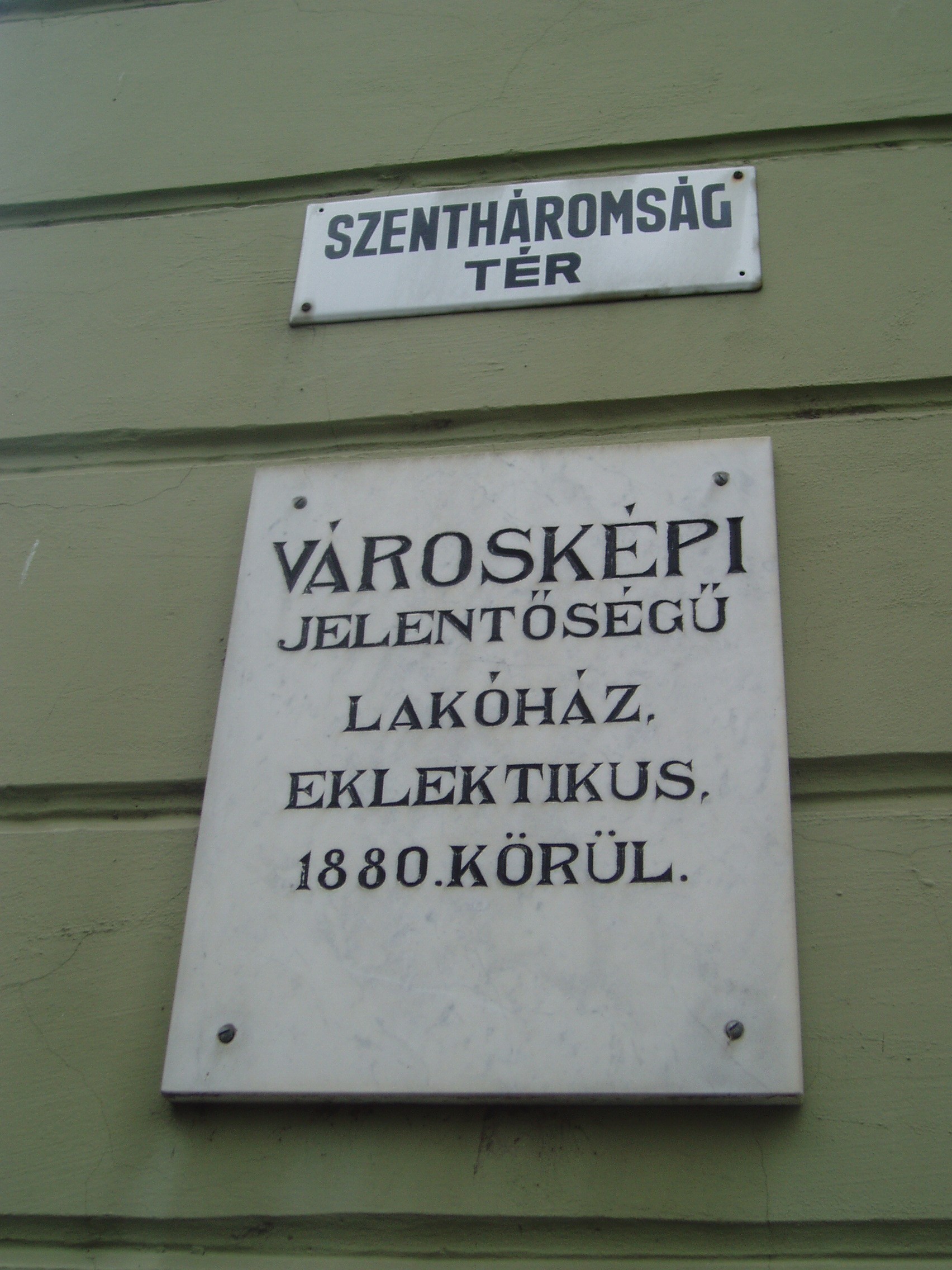 Nyilvános 1076 | 1703 | Baja, Szentháromság tér 3. | A bajai Szentháromság teret magyarországi Szent Márk térként emlegetik. Értékét nemcsak épületei, hanem kövezete is adja. A teret, amely három oldalról beépített, s nyitott negyedik oldala a Sugovicára néz, lóhere formában keresztezik az utak. A teret városképi jelentőségű épületek veszik körül, ezek egyike a 3. számú, 1880 körül eklektikus stílusban épült városi palota. Itt működött egykor a Reich Farkas és Fiai cég áruháza. A fénykép 2007 októberében készült. Felh. irod.: Látnivalók Bács-Kiskun megyében. Miskolc, Well-PRess, 2002 Magyarország műemlékjegyzéke: Bács-Kiskun megye. Bp. Kulturális Örökségvédelmi Hivatal, 2006 |