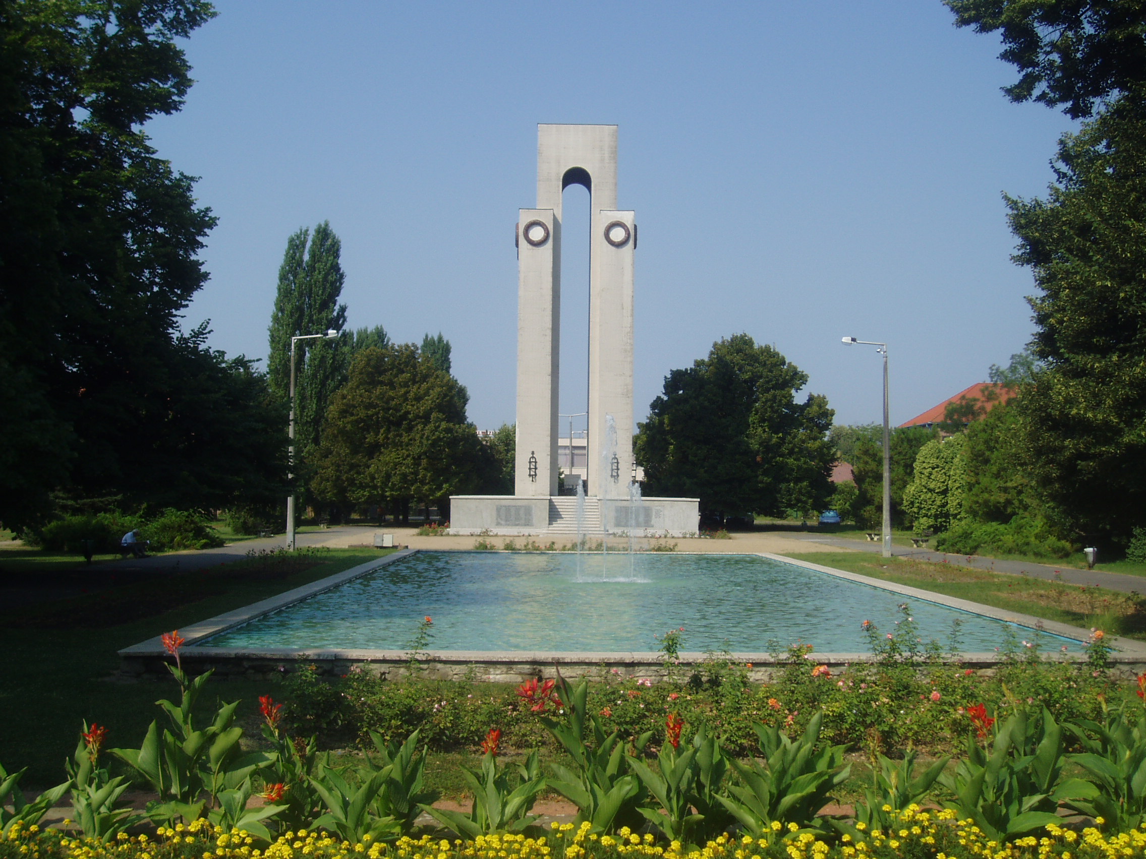Mohács, Hősök parkja: Hősök emlékműve Az egykori vá ...