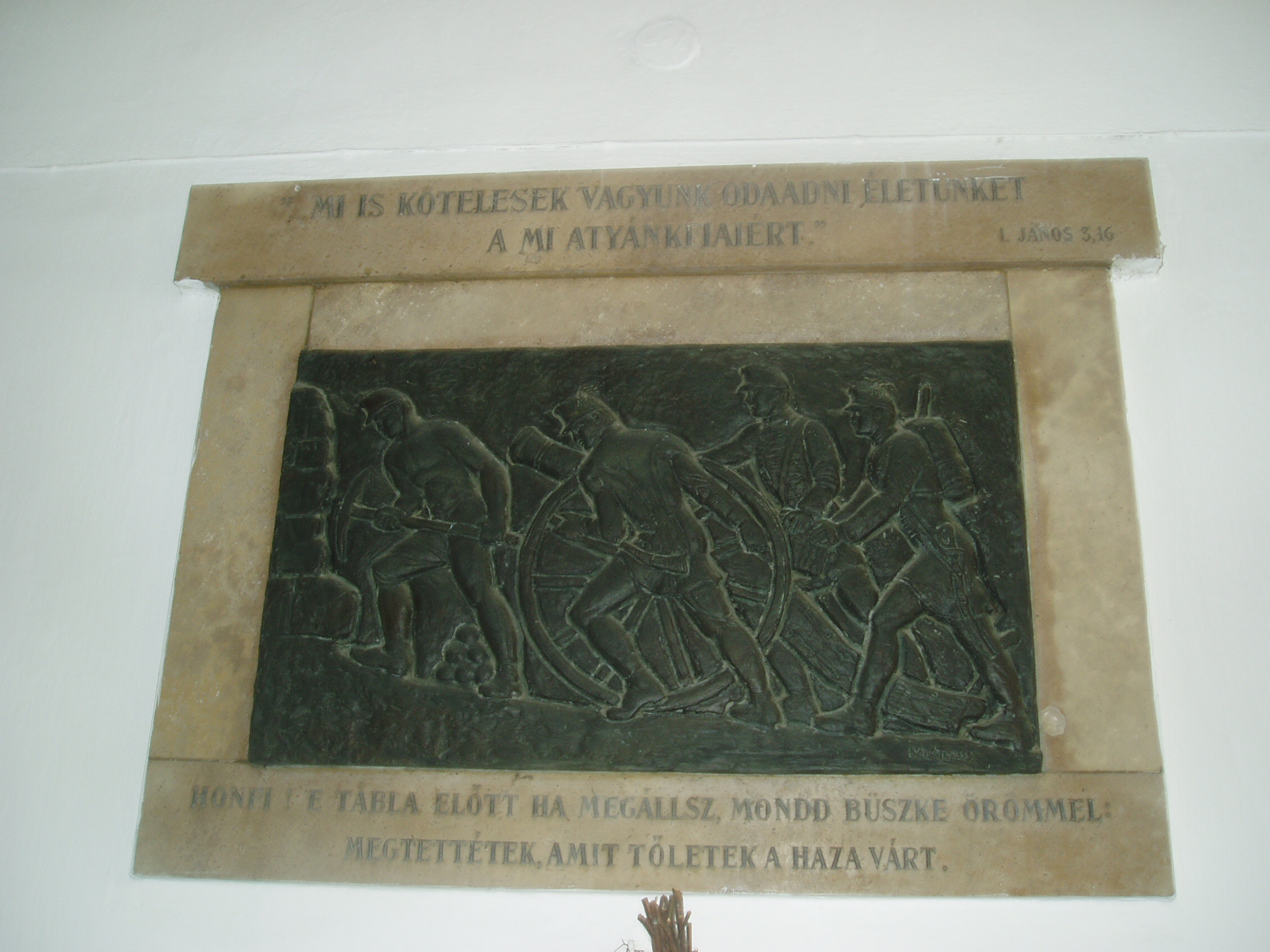 Nyilvános 1015 | 1526 | Sárospatak, Rákóczi utca 1. Református Kollégium | A kollégium főépülete, a Nagy Kollégium a Rákóczi út északi végén található, mely 1804–1814 között korai klasszicista stílusban épült. Szép ráccsal ellátott, háromíves nyílású kapuzat vezet be az un. „nagyportá”-ba, amelyet két sor vaskos pillér három hajóra oszt. Kétoldalt a falakon az iskolatörténet néhány fontosabb eseményének, illetve a kollégium nagy alakjainak bronz domborművű ábrázolásait helyezték el. A képen az 1848/49-es szabadságharcban részt vett egykori pataki diákok domborműve látható. Az 1948-ban felavatott tábla alkotója Medgyessy Ferenc. A fénykép 2007 augusztusában készült. Felh. irod.: Détsy Mihály: Sárospatak. Bp. Corvina, 1974 Látnivalók Borsod-Abaúj-Zemplén megyében. Miskolc, Well-PRess, 1995 www.sarospatak.hu/nevezetessegek |