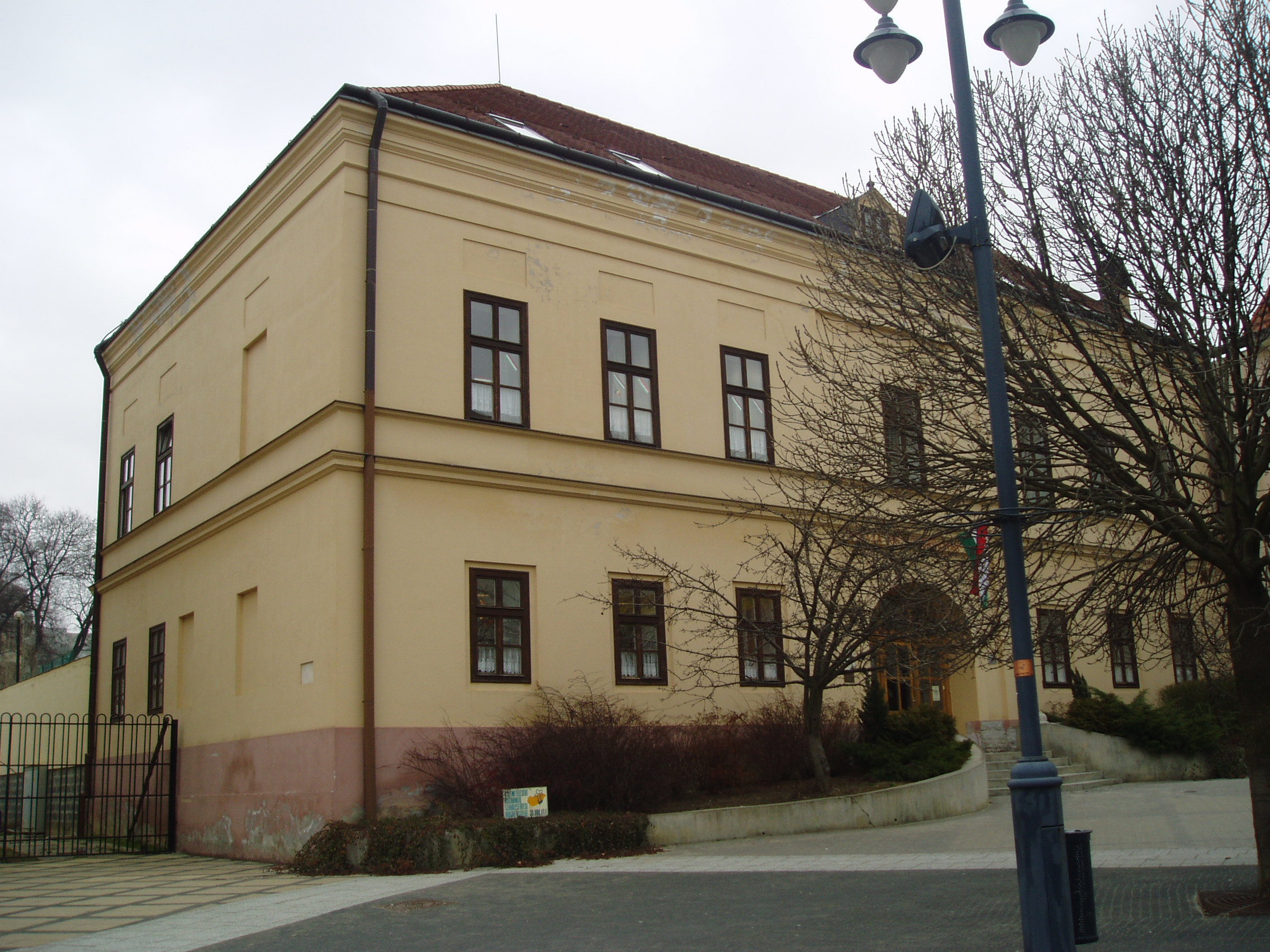 Nyilvános 1005 | 1629 | Kaposvár, Kossuth tér 2. | A volt nemzeti iskola épületének kapuja felett felirat tudósít építésének időpontjáról: "A haza kis polgárainak 1832". Az iskolát az 1880-as években eklektikus stílusban átalakították, de mindig oktatási intézményeknek adott otthont. A fénykép 2006 márciusában készült. Felh. irod.: Látnivalók Somogy megyében. Miskolc, Well-PRess, 2000 /Vendégváró/ www.kaposvar.hu |