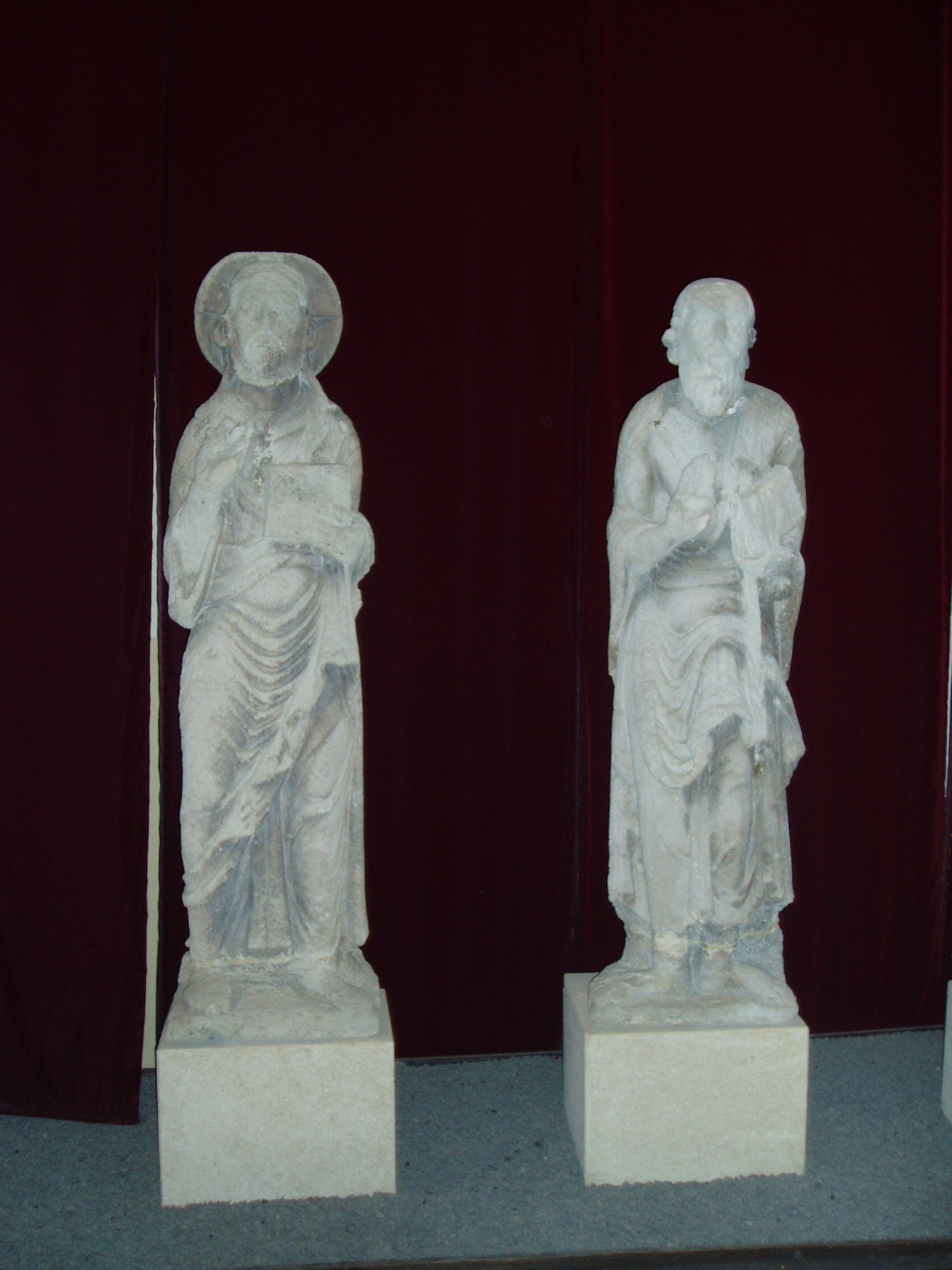 Nyilvános 1072 | 1798 | Szombathely, Kisfaludy utca 9. Savaria Múzeum | Az érdeklődő a Savaria Múzeum nagytermében tekintheti meg a jáki templom (lásd: Ják, Templom) eredeti homlokzati szobrait, amelyek Krisztust és a tizenkét apostolt ábrázolják. Az életnagyságú szobrok a magyarországi későromán szobrászat kiemelkedő alkotásai. Eredetileg a templom kapuépítményének homlokzatát díszítették, lépcsőzetesen elhelyezve, oszlopokkal elválasztott, karéjos záródású fülkékben állva. Jákon jelenleg pontos másolataik láthatók. Kicserélésük oka a nagyértékű szobroknak az időjárás viszontagságaitól való megvédése volt. A jáki apátsági templom, az egykori jáki bencés apátság monumentális bazilikája a magyarországi román stílusú építészet kiemelkedő, szinte szimbolikus alkotása. A hazai középkori nemzetségi monostorok egyedülálló épségben fennmaradt képviselője, mely művészi gazdagságával, a táj képébe illeszkedő mesteri elhelyezésével hívja fel magára a figyelmet. A fénykép 2006 májusában készült. |