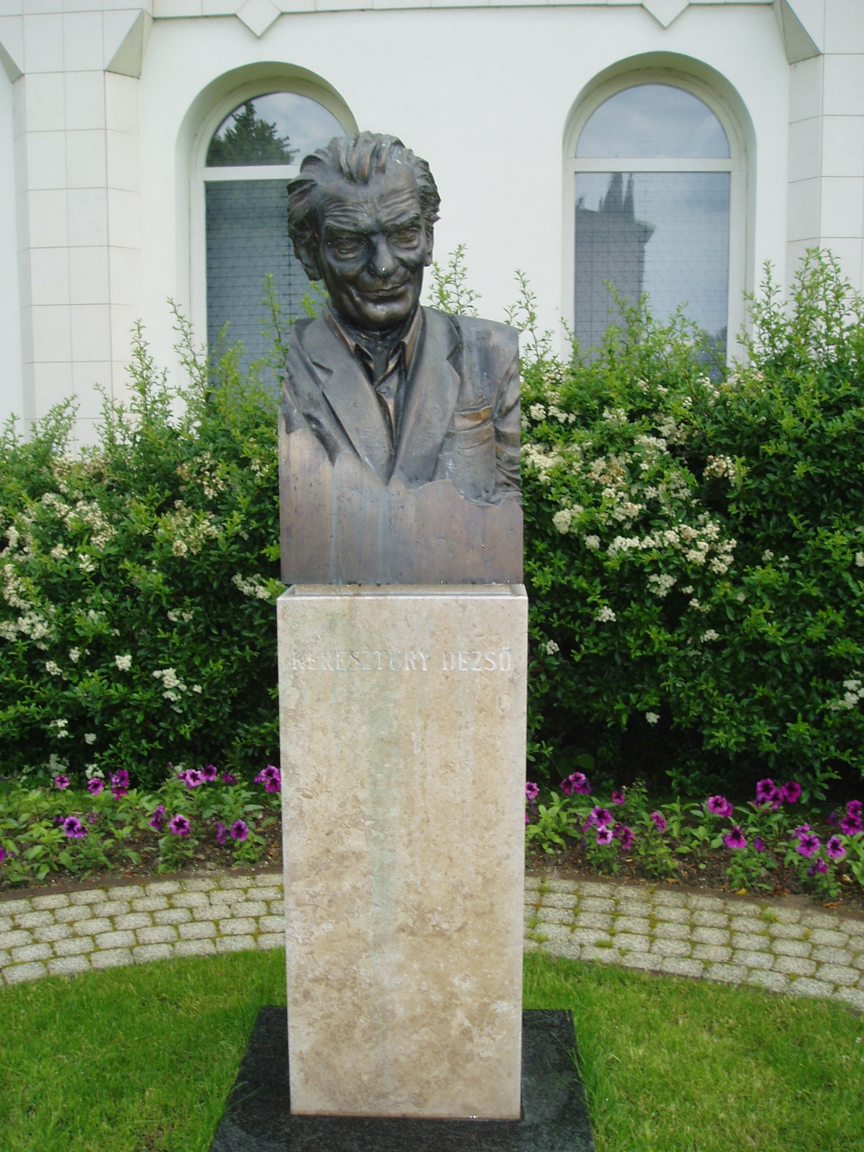 Nyilvános 1198 | 2577 | Zalaegerszeg, Keresztury Dezső tér: Keresztury Dezső mellszobra | 2004-ben, születésének centenáriumán Zalaegerszeg nagy szülötte, Keresztury Dezső író, költő, műfordító, irodalomtörténész, miniszter, akadémikus nevét vette fel az addig Centrumnak nevezett tér. Ekkor leplezték le mellszobrát is, Szórádi Zsigmond alkotását. Keresztury Dezső a közelben lévő Mártírok útja 2. számú épületben született (részletesebben lásd ott). A felvétel 2006 júniusában készült. Felh. irod.: Szelleme ma is velünk van. Ünnepség Keresztury Dezső 100. születésnapján. = www.zalamedia.hu |