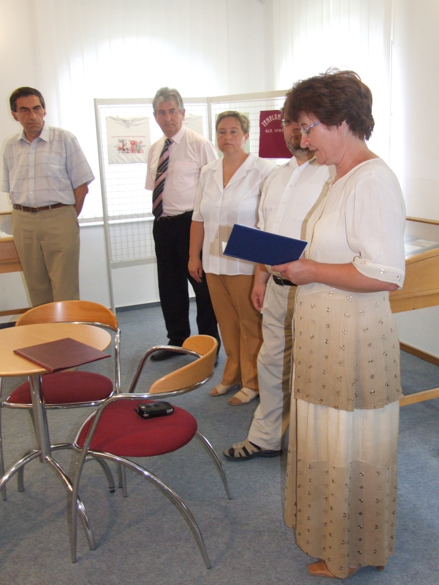 Nyilvános 1460 | 1982 | Balról jobbra: | Tarnóczky Attila, a kiállítás szervezője, Horváth István versmondó, Száraz Csilla, a Thúry György Múzeum igazgatója, Czupi Gyula, a Halis István Városi Könyvtár igazgatója, Szmodics Józsefné, Nagykanizsa M.J.V. Önkormányzatának Művelődési és Sportosztály vezetője |