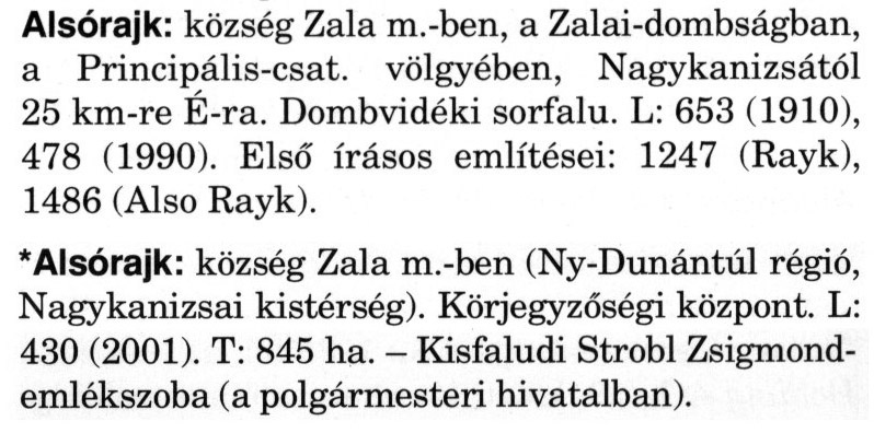 Nyilvános 2064 | 6420 | A szócikkek felismertetett szövege: | (A csillag után a kiegészítő kötetből származó szöveg következik) Alsórajk: község Zala m.-ben, a Zalai-dombságban, a Principális-csat. völgyében, Nagykanizsától 25 km-re É-ra. Dombvidéki sorfalu. L: 653 (1910), 478 (1990). Első írásos említései: 1247 (Rayk), 1486 (Also Rayk). * Alsórajk: község Zala m.-ben (Ny-Dunántúl régió, Nagykanizsai kistérség). Körjegyzőségi központ. L: 430 (2001). T: 845 ha. - Kisfaludi Strobl Zsigmondemlékszoba (a polgármesteri hivatalban). A szócikkek a következő lexikonból származnak: Cím: Magyar nagylexikon Közreműködő: Élesztős László (1949) (szerk.) ; Barabás Éva (1943) (szerk.) ; Berényi Gábor (1946) (szerk.) ; Bárány Lászlóné (szerk.) ; Adelmann-né Kertész Judit (1945) (közrem.) ; Froemel Károlyné Jáky Éva (1936) (közrem.) ; Akadémiai Kiadó és Nyomda Vállala Szerz. közl.: [... Élesztős László főszerk.] ; [szerk. Barabás Éva et al.] ; [bibliogr. Adelmanné Kertész Judit] ; [kész. az Akadémiai Kiadó Magyar Nagylexikon Szerkesztőségében] Kiadás: Budapest : Akad. K., 1993- Kötetei: 1. köt., A - Anc 2. köt., And - Bag 3. köt., Bah - Bij 4. köt., Bik - Bz 5. köt., C - Csem 6. köt., Csen - Ec 7. köt., Ed - Fe 8. köt., Ff - Gyep 9. köt., Gyer - Iq 10. köt., Ir - Kip 11. köt., Kir - Lem 12. köt., Len - Mep 13. köt., Mer - Nyk 14. köt., Nyl - Pom 15. köt., Pon - Sek 16. köt., Sel - Szö 17. köt., Szp - Ung 18. köt., Unh - Z 19. köt., Kiegészítő kötet, A - Z ETO jelzet: 030=945.11 Szakjelzet: 030 Cutter: M 14 ISBN: 963-05-6611-7 [!ISBN 963-05-6615-X] Nyelv: magyar Megjegyzés: Az 5. kötettől kiad. a Magyar Nagylexikon Kiadó ; A 6. kötettől főszerk. Berényi Gábor ; A 6. kötettől szakszerk. Bárány Lászlóné et al. ; A 6. kötettől bibliogr. Froemel Károlyné ; Bibliogr. a szócikkek végén |