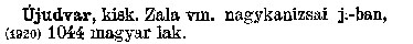 Nyilvános 2643 | 6633 | Rövid leírás | Teljes leírás (1005 B) | Újudvar kisk. Zala vm. nagykanizsai j. -ban, (1920) 1044 magyar lak. Cím: Révai nagy lexikona Alcím: az ismeretek enciklopédiája Kiadás: Budapest : Révai testvérek, [1911]- Kötetei: 1. köt., A - Arany 2. köt., Arány - Beke 3. köt., Béke - Brutto 4. köt., Bratus - Csát 5. köt., Csata - Duc 6. köt., Duc - Etele 7. köt., Stelka - Földöv 8. köt., Földpálya - Gres 9. köt., Gréc - Herold 10. köt., Hérold - Jób 11. köt., Jób - Nontur 12. köt., Kontúr - Lovas 13. köt., Lovas - Mons 14. köt., Mens - Ottó 15. köt., Ottó - Racine 16. köt., Racine - Sodoma 17. köt., Sodoma - Tarján 18. köt., 19. köt., Vár - Zsüri | Kiegészítés Aachen - Beöthy 20. köt., Kiegészítés: Bér - Zsolt ETO jelzet: 03=945.11 Szakjelzet: 030 Cutter: R 62 Nyelv: magyar |