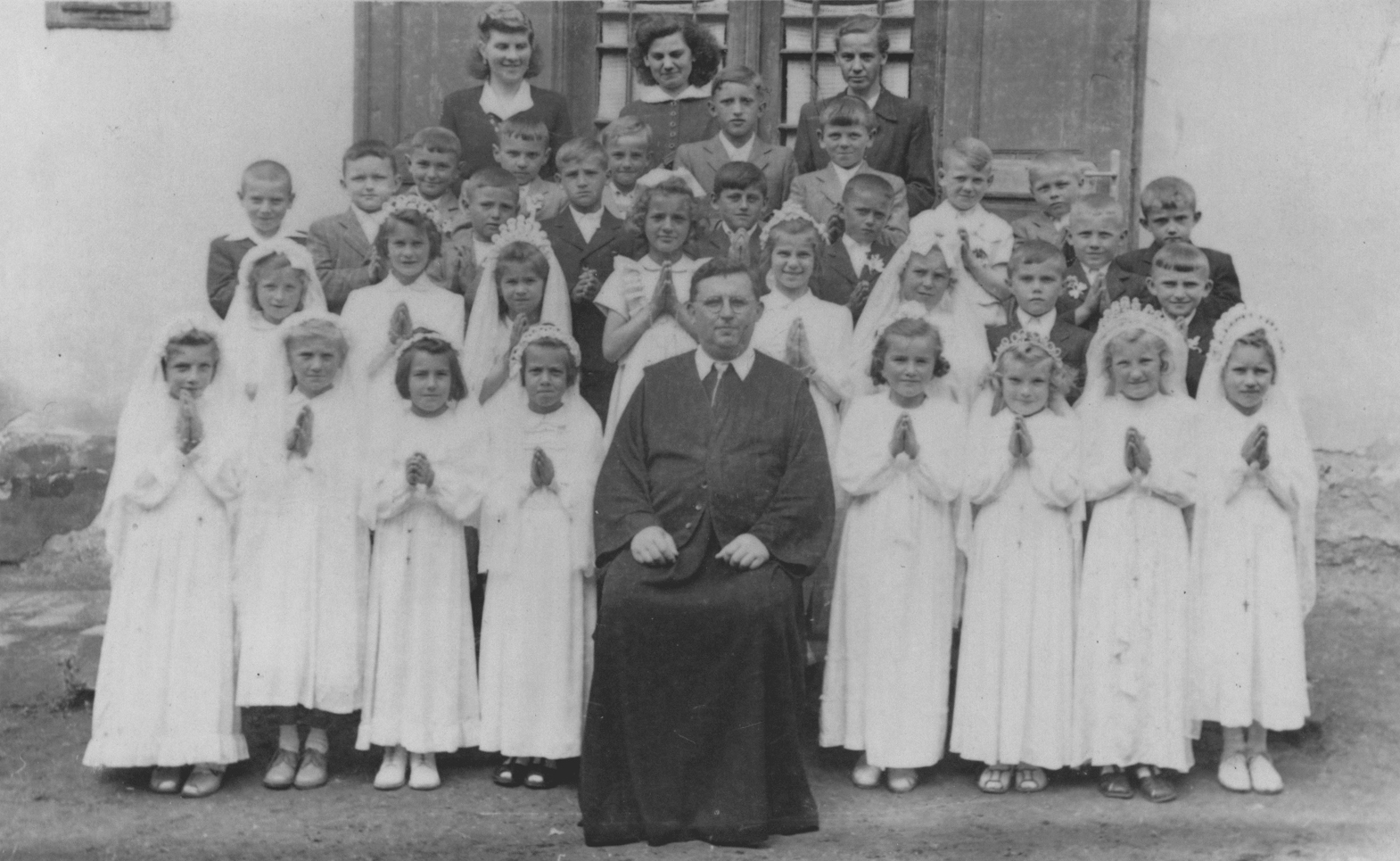 Paplakás. A pap neve: Szalai Miklós. 1958. Elsőáldozás.