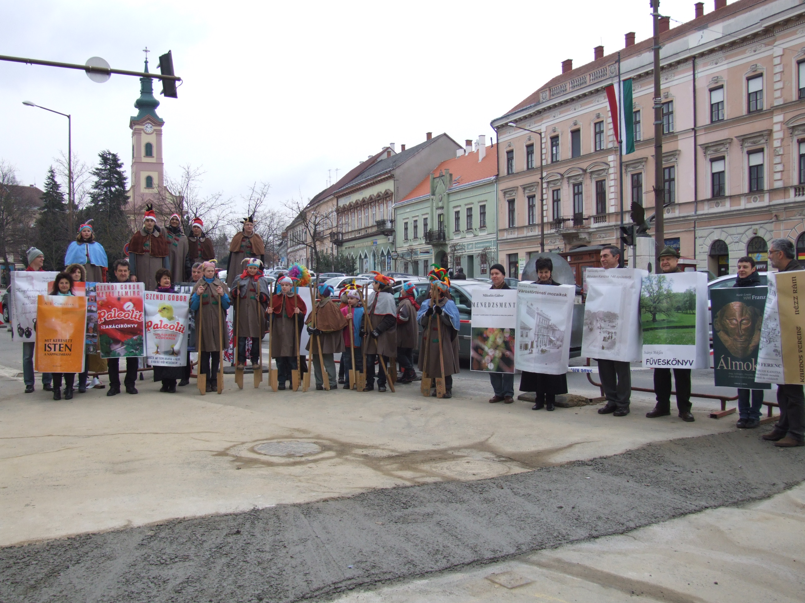 Nyilvános 1000 | 1805 | 2013. február 9. A farsangi fánkfesztiválra készülve felhívásban kértük olvasóinkat, hogy öltsék magukra kedves könyvüket. Egy „könyvespolcnyi” jelentkező vette magára kedves olvasmányát, az ő vonulásukról készültek ezek a képek. A környezetükben néhol láthatók a Nagykanizsai Gólyalábasok, akik szintén a könyvtárhoz kötődnek. A „felvonuló kötetek” a könyvtár épületében még megtekinthetők. | |