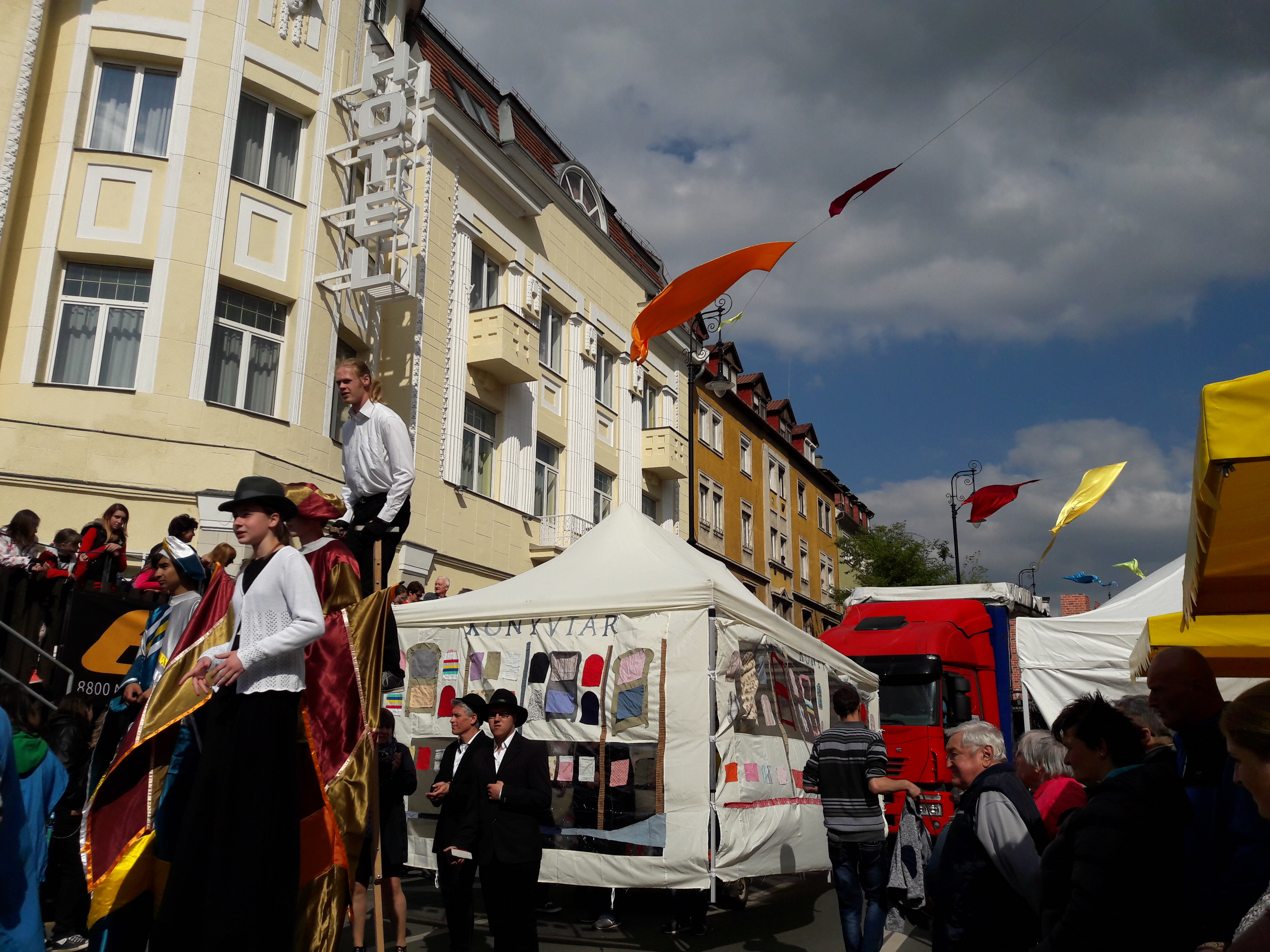 2017.04.30. Utca Tánc Fesztivál - Vonulás - Gólyalábasok, fekete kalapos táncosok, meridián tornások