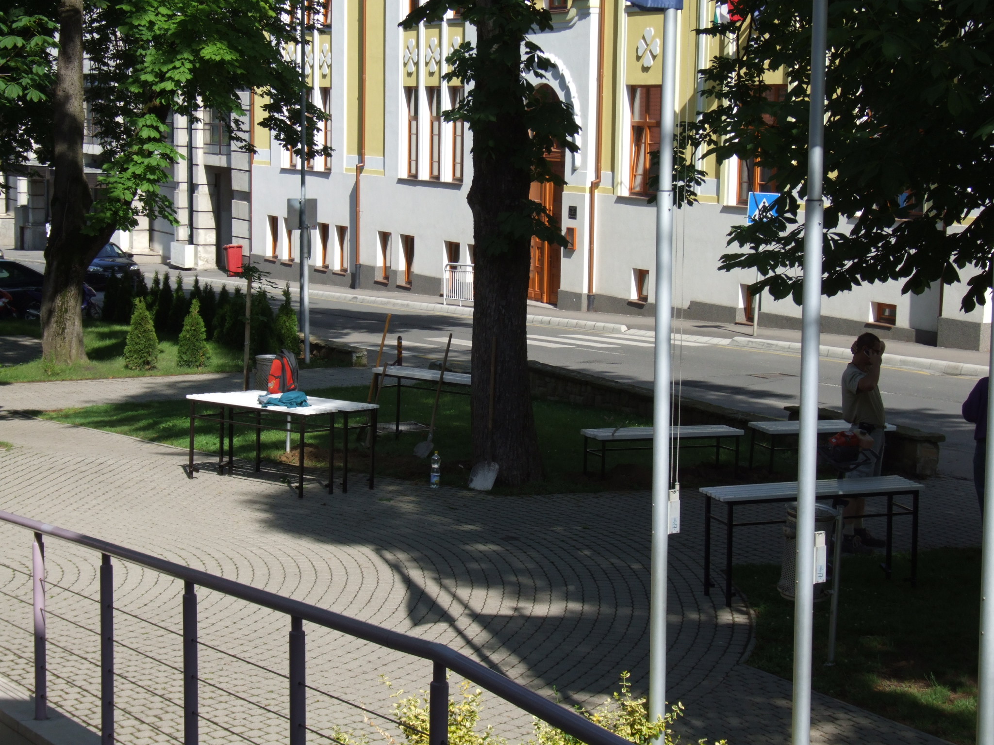 2009.06.08. Szerelik az első, fehér padokat