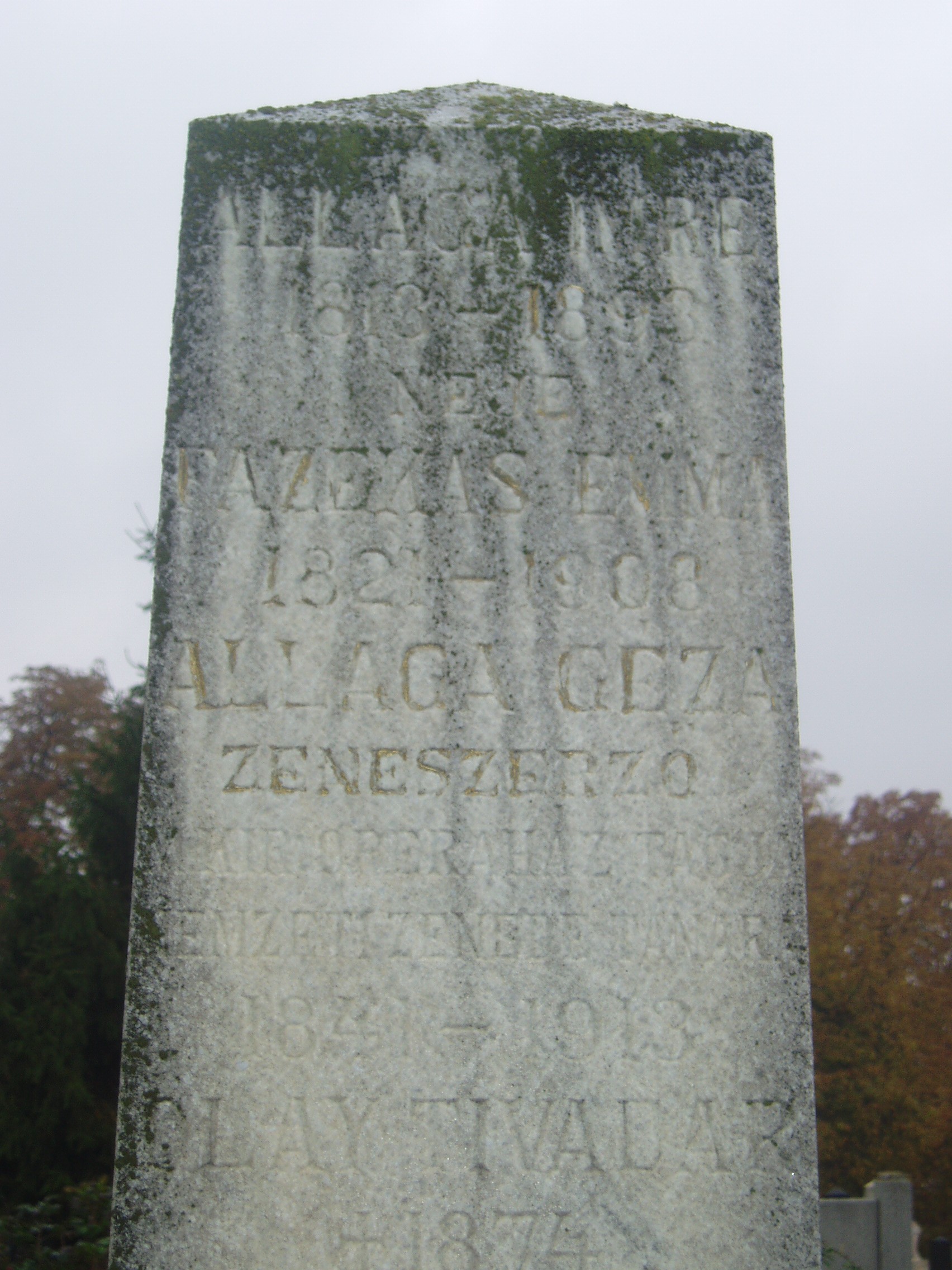 Nyilvános 1141 | 2367 | Baja, Rókus utca: Rókus temető - Allaga Géza sírja | A temetőkápolna közelében van Allaga Géza zeneszerző, karmester, cimbalomművész sírja. Az 1841-ben Óbecsén született zenész kisgyermek korában költözött szüleivel Bajára. Itt járt gimnáziumba, s kezdett zenével foglalkozni. A bécsi zeneakadémián végzett tanulmányai után színházaknál dolgozott, népszínművekhez írt dalokat. 1870-től a bajai tanítóképzőben tanított, de hamarosan a fővárosba költözött, s a Nemzeti Színház, majd az Operaház zenekarának első gordonkásaként működött. 1880-tól kezdett el a cimbalommal foglalkozni olyan eredményesen, hogy felkeltette Liszt Ferenc figyelmét is, s a Nemzeti Zenedében cimbalom tanszéket létesítettek számára. Idős korában visszatért Bajára, egyik fivére házában élt. Családi problémák és gyógyíthatatlan betegsége miatt 1913 augusztusában öngyilkos lett. A fénykép 2007 októberében készült. Felh. irod.: Herencsár Viktória: Cimbalmos ősök nyomában I. Allaga Géza. Bp. szerzői kiadás, 2001 Gál Zoltán : A cimbalom atyjának nevezték. = w.bacskaisport.hu |