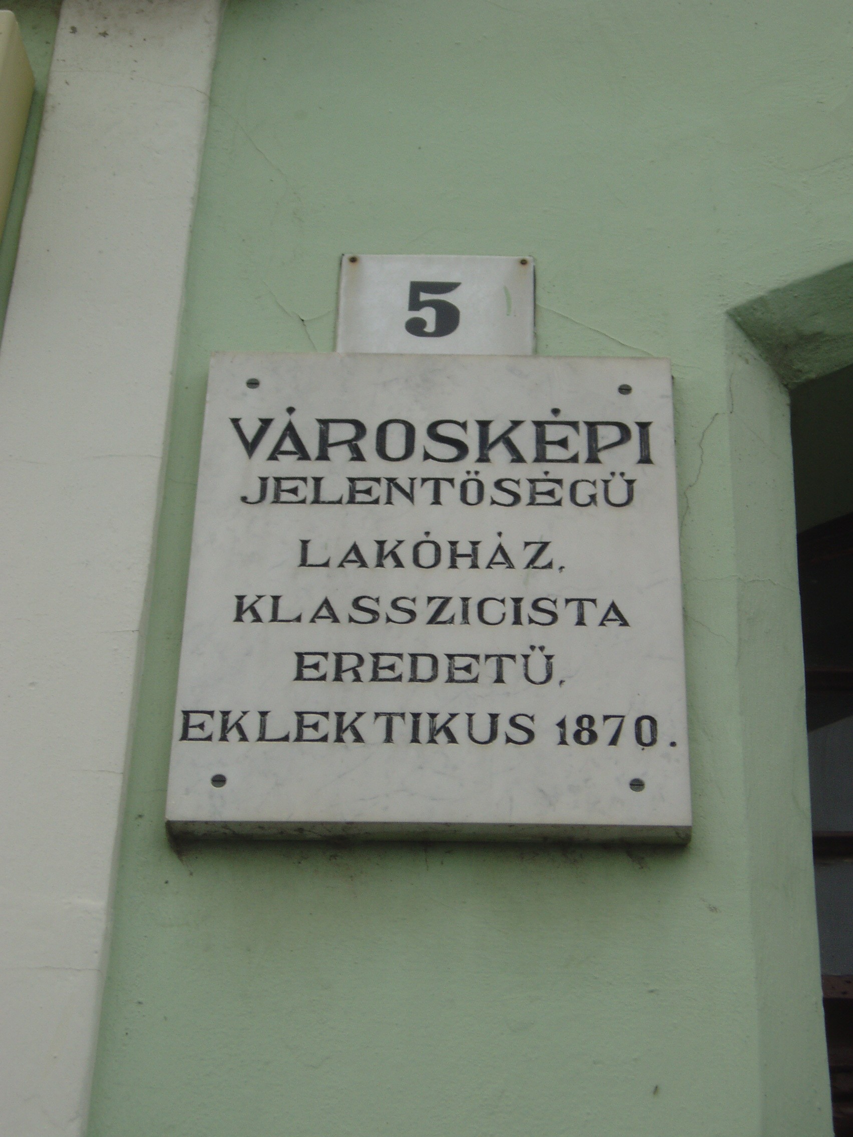 Nyilvános 983 | 1436 | Baja, Szentháromság tér 5. | A bajai Szentháromság teret magyarországi Szent Márk térként emlegetik. Értékét nemcsak épületei, hanem kövezete is adja. A teret, amely három oldalról beépített, s nyitott negyedik oldala a Sugovicára néz, lóhere formában keresztezik az utak. A teret városképi jelentőségű épületek veszik körül. A 5. házszámú, klasszicista eredetű városi palotát 1870 körül építették újjá eklektikus stílusban. A fénykép 2007 októberében készült. Felh. irod.: Látnivalók Bács-Kiskun megyében. Miskolc, Well-PRess, 2002 |