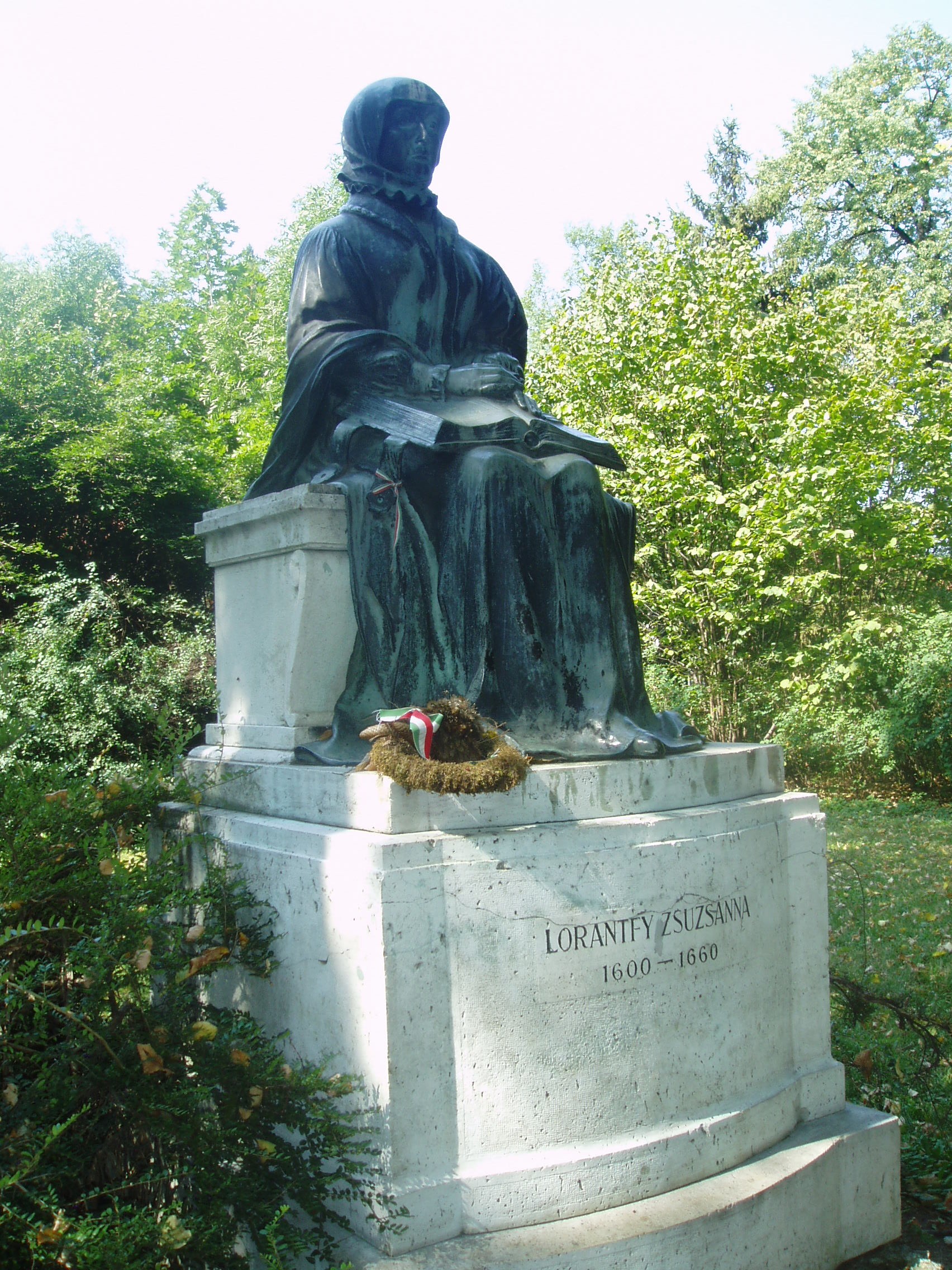 Nyilvános 1207 | 5406 | Sárospatak, Iskolakert: Lorántffy Zsuzsanna szobra | A Református Kollégium (lásd: Sárospatak, Rákóczi u. 1.) bejáratával szemben találjuk az Iskolakertnek nevezett parkot. Az 1980-as években természetvédelmi területté nyilvánított Iskolakert sajátos nemzeti érték, mely egyedülálló az országban. Sétányai mentén Patakhoz kötődő jeles személyiségek szobrai állnak. Lorántffy Zsuzsanna (1600-1660) egész alakos ülő bronzszobra az Iskolakert főútja mentén, a Kossuth kollégiumhoz vezető út tengelyében található. Horváth Géza szobrászművész alkotását 1931-ben leplezték le. Lorántffy Zsuzsanna, I. Rákóczi György felesége sokat tett a kollégiumi oktatás fellendítéséért. Férje 1648-ban bekövetkezett halála után is a városban maradt. Meghívására érkezett a pataki kollégiumba tanárként 1650-ben Comenius. A fejedelemasszony nyomdát is alapított 1651-ben. Patakon hunyt el 1660. április 18-án. A fénykép 2007 augusztusában készült. Felh. irod.: Látnivalók Borsod-Abaúj-Zemplén megyében. Miskolc, Well-PRess, 1995 www.sarospatak.hu/nevezetessegek Erős Zoltán: Magyar irodalmi helynevek A-tól Z-ig. Bp. Kis-Lant Kiadó, 1995 |
