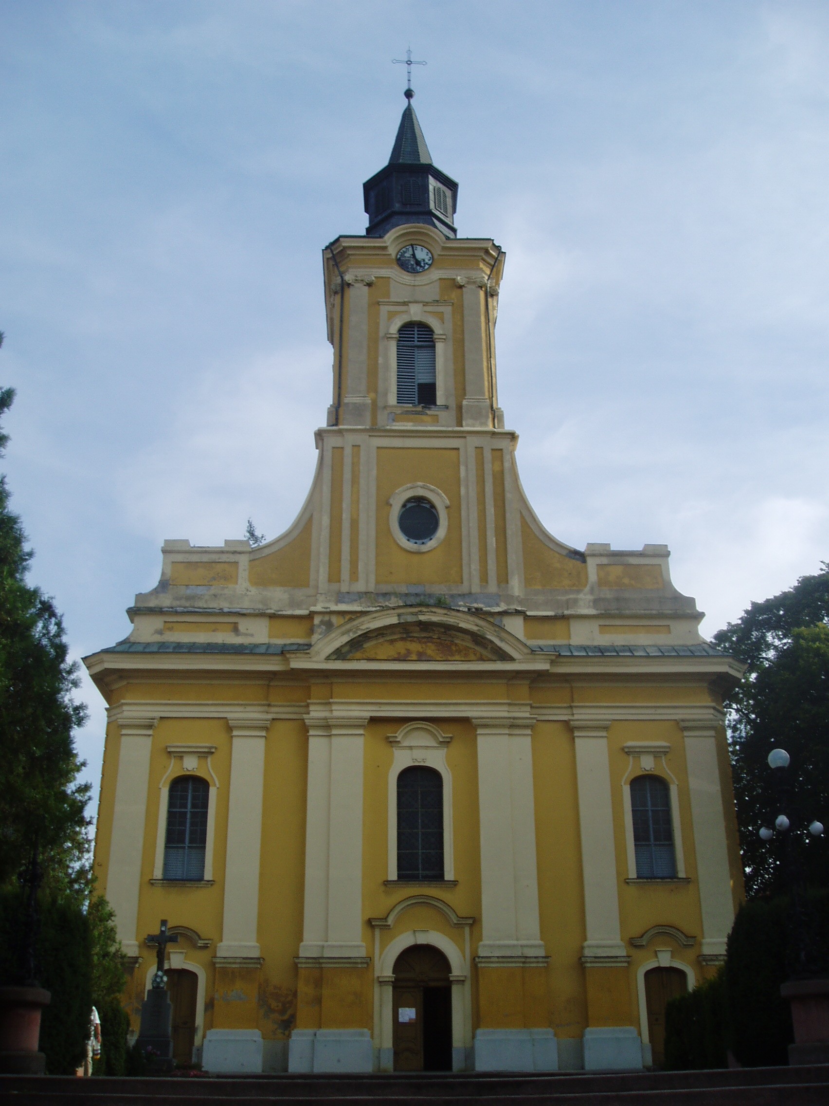 Nyilvános 992 | 1558 | Sátoraljaújhely, Széchenyi tér: Nagytemplom | A későbarokk stílusú épület helyén a Szent Imréről elnevezett templom állt. A mai templom a többszöri tűzvész, átépítés és a katolikusok, reformátusok közötti birtoklás után, 1768 és 1798 között épült fel. Jelenlegi formáját a XX. század elején végzett bővítések során kapta. Főoltárát Hild Lipót készítette. A templom nyugati falánál áll Szent Flórián, a tűzoltók, kéményseprők, kovácsok, serfőzők védőszentjének szobra. A Nagytemplom és a Kossuth-szobor között az ún. Nimfás-kút csörgedezteti a hegyekből lefutó Dörzsik-forrás vizét. A fénykép 2007 augusztusában készült. Felh. irod.: Látnivalók Borsod-Abaúj-Zemplén megyében. Miskolc, Well-PRess, 2003 |
