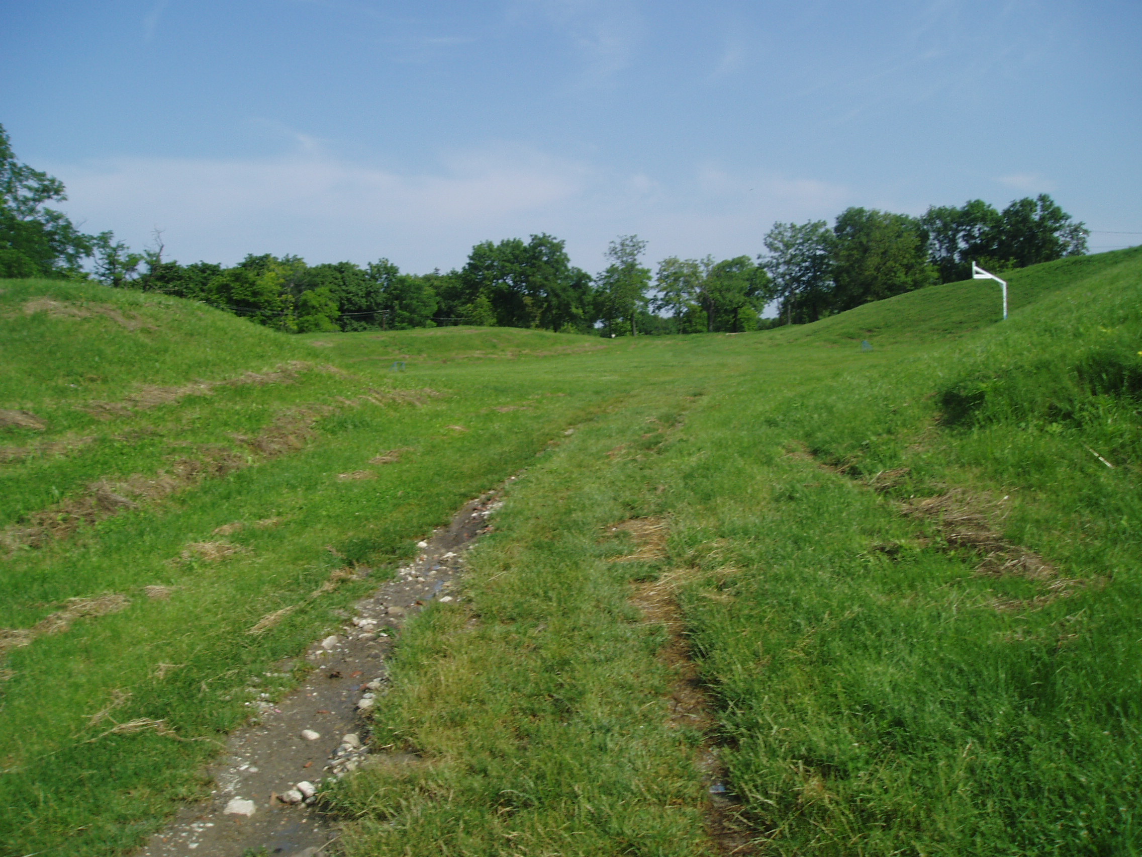 Nyilvános 1016 | 2193 | Sopron, Bécsi domb: az amfiteátrum helye | Ezen a helyen volt egykor az ókori Scarbantia amfiteátruma. A 125 méter hosszú és 85 méter széles építmény körvonalai ma is jól kivehetők. Az arénájában tartott ünnepségeket mintegy 14 ezer néző tekinthette meg. A fénykép 2008 júniusában készült. Felh. irod.: Czellár Katalin: Sopron. 3. jav. kiad. Bp. Panoráma, 2000 |
