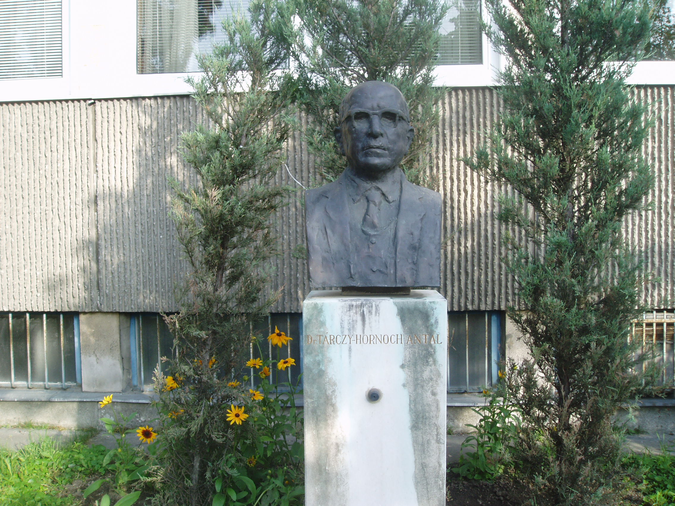 Nyilvános 1003 | 1580 | Sopron, Csatkai Endre utca 6-8. | A modern épületben a Magyar Tudományos Akadémia Geodéziai és Geofizikai Kutatóintézete működik. Az itt dolgozó mintegy 35 kutató geodéziai és geofizikai alapkutatásokban vesz részt. Homlokzatán 1990-ben avatták fel dr. Tárczy Hornoch Antal (1900-1986) emléktábláját. A bányamérnök, egyetemi tanár, akadémikus a magyar bányamérési, földmérési és geofizikai tudományok és hagyományok elhivatott hirdetője és oktatója volt. Kezdeményezésére indult meg Sopronban 1949-ben az önálló földmérőmérnök, 1951-ben pedig a geofizikus-mérnök képzés. Mellszobor is őrzi emlékét, alkotója Varga Éva. A fénykép 2008 júniusában készült. Felh. irod.: http://www.ggki.hu |