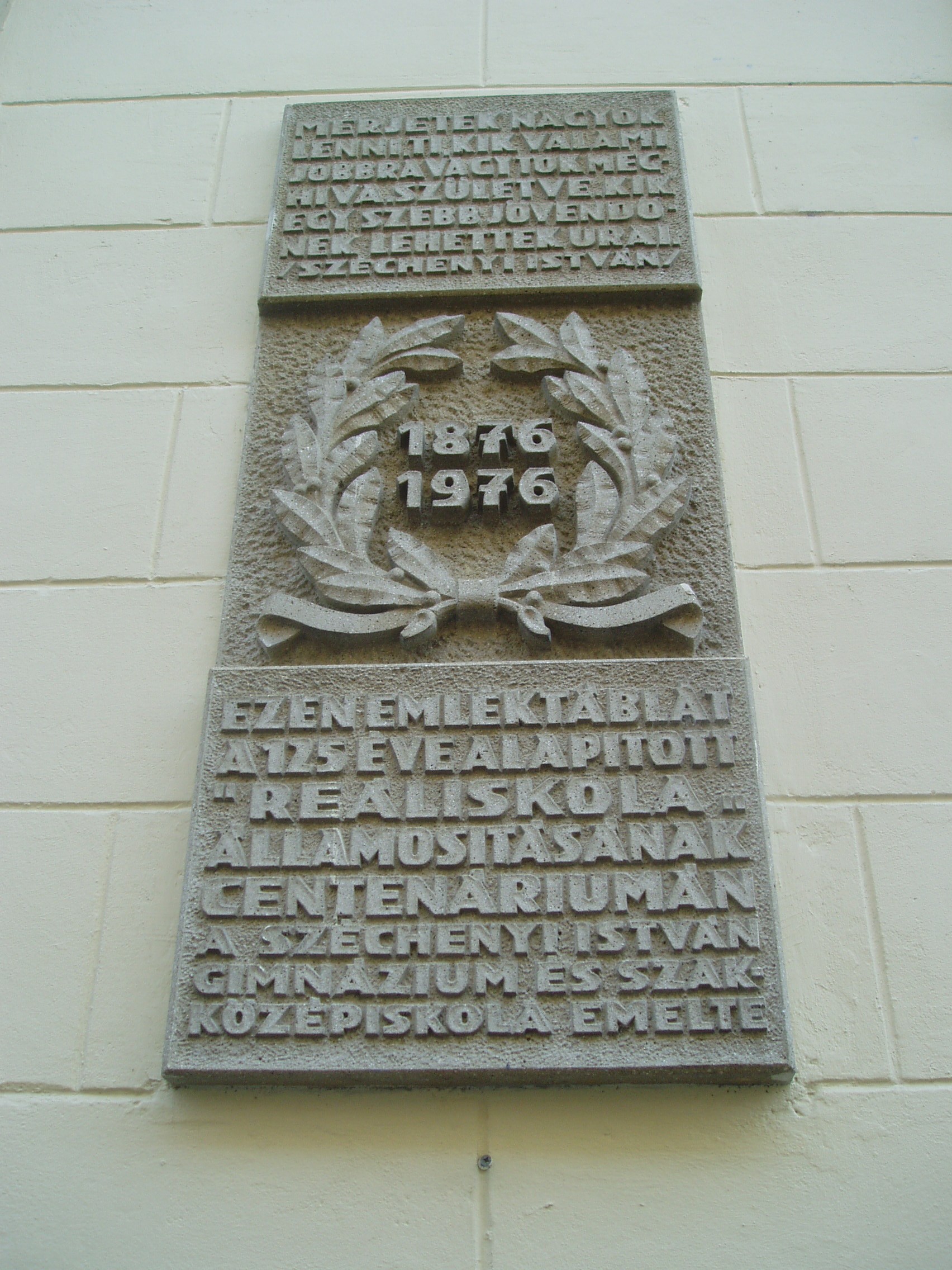Nyilvános 986 | 1458 | Sopron, Liszt Ferenc utca 1. | A Széchenyi István Gimnázium eredetileg reáliskola volt, amelyet 1850-ben alapítottak (lásd: Liszt Ferenc utca 2.). A Liszt Ferenc utca sarkán álló épületrészét, amelynek ezen a képen az udvari része látható, 1872-ben építették. Az épület Templom utca felőli oldalán állították a képen látható emléktáblát. Felh. irod.: http://szig.sopron.hu/ |