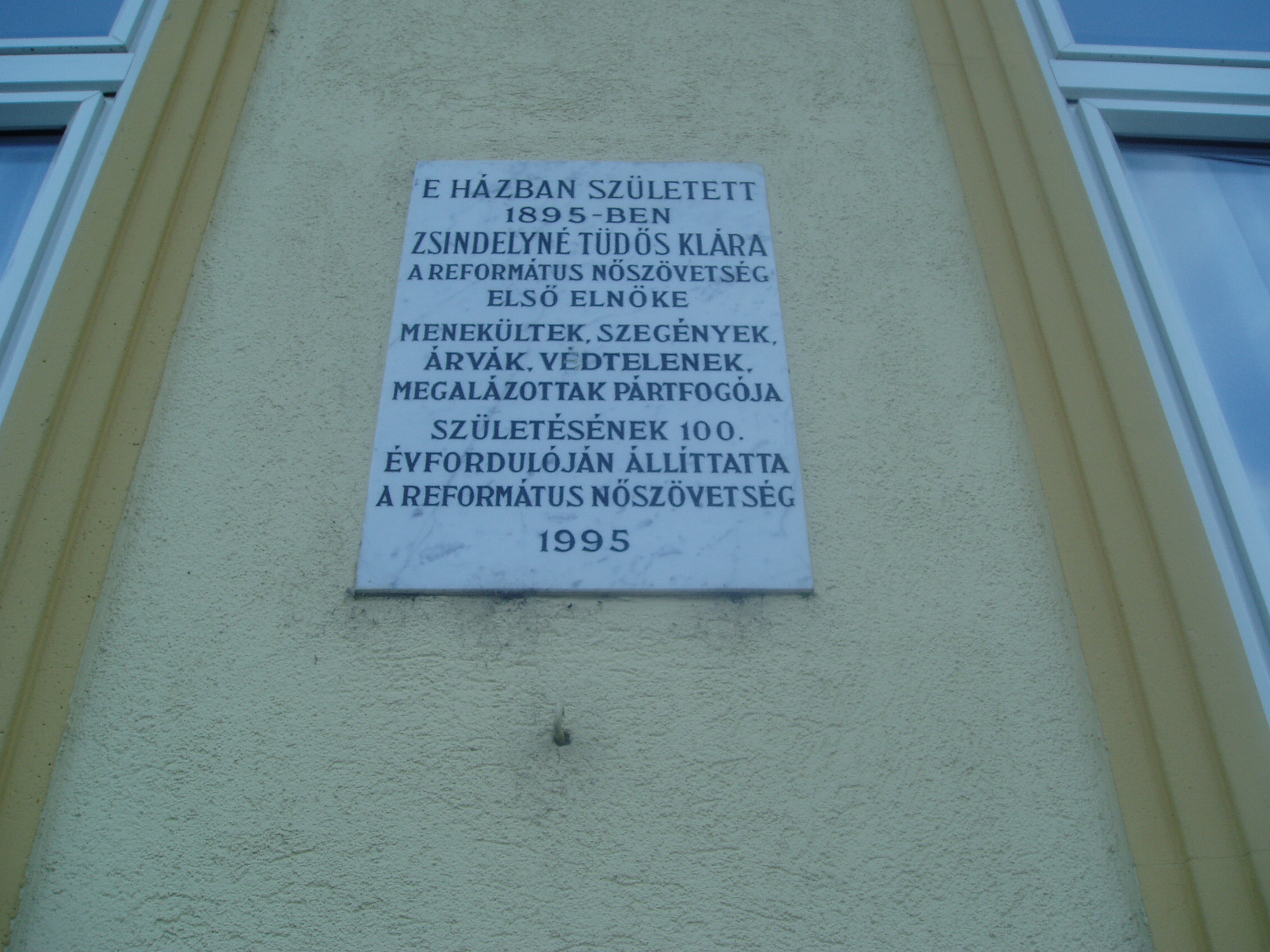 Nyilvános 1011 | 1616 | Debrecen, Péterfia utca 30. | Ebben a házban született Zsindelyné Tüdős Klára (Debrecen, 1895. július 20. – Bp., 1980. április 16.): jelmeztervező, népművészeti kutató. Iparművészeti és néprajzi tanulmányok után 1925-ben került az Operaházhoz, a jelmezműhely vezetője és jelmeztervezője volt. Ő tervezte Kodály Zoltán Háry Jánosa 1926-os ősbemutatójának jelmezeit. Az 1930-as években a Belvárosban divatszalont nyitott, ahol tervezésében divatba hozta a paraszthímzéssel, szőttesekkel díszített ruhákat. 1944-ben az Országos Református Nőszövetség elnöke lett. Megalapította a szövetség lapját, a Magyar Asszonyt. A II. világháború idején a svéd misszióval együtt számos üldözöttnek adott menedéket. 1952-ben férjével együtt kitelepítették. 1963-ig éltek Balatonlellén egy nyaraló házmestereként. A fénykép 2006 júniusában készült. Felh. irod.: Magyar életrajzi lexikon |