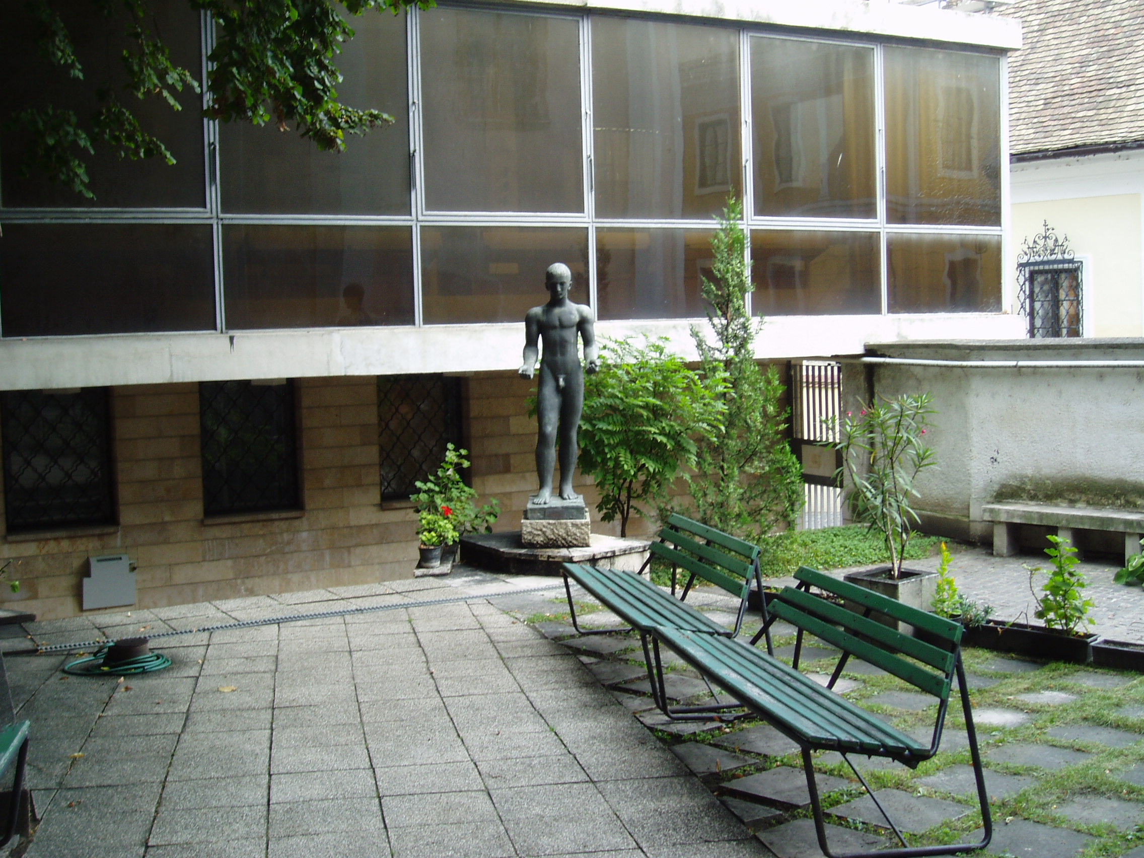 Nyilvános 1151 | 2216 | Szentendre, Fő tér 6. Ferenczy Károly Múzeum | A Ferenczy Károly Múzeum az egykori ortodox szerb iskola copf stílusú, 1793-ból származó, Oesner Antal József tervezte épületében kapott helyet. A fényképen látható udvar felőli, modern szárnya 1972-ben, Cifka Anna tervei alapján készült. Az 1951-ben alapított múzeum az imresszionizmus egyik legnagyobb magyar mesteréről, Ferenczy Károly (1862-1917) festőművészről kapta a nevét, aki 1889-92-ben Szentendrén élt és alkotott. Gyermekei közül az ikertestvérek: Noémi, a gobelinművész és Béni, a szobrász 1890-ben itt születtek (lásd: Szentendre, Alkotmány u. 1.). A múzeum állandó kiállításon a Ferenczy művészcsalád alkotásai láthatók (Ferenczy Károlyné Fialka Olga is jeles festőművész volt). De gazdag a gyűjtemény más szentendrei művészek munkáit őrzőt képzőművészeti alkotásokban, elsősorban római kori régészeti leletekben, valamint helytörténeti és a környék hagyományait bemutató néprajzi tárgyakban, dokumentumokban is. A fénykép 2005 szeptemberében készült. Felh. irod.: http://pmmi.hu/muzeumok/ferenczy/index.htm Szentendre. Szerk. Sándyné Wolf Katalin. Szentendre, 1985 www.vendegvaro.hu |