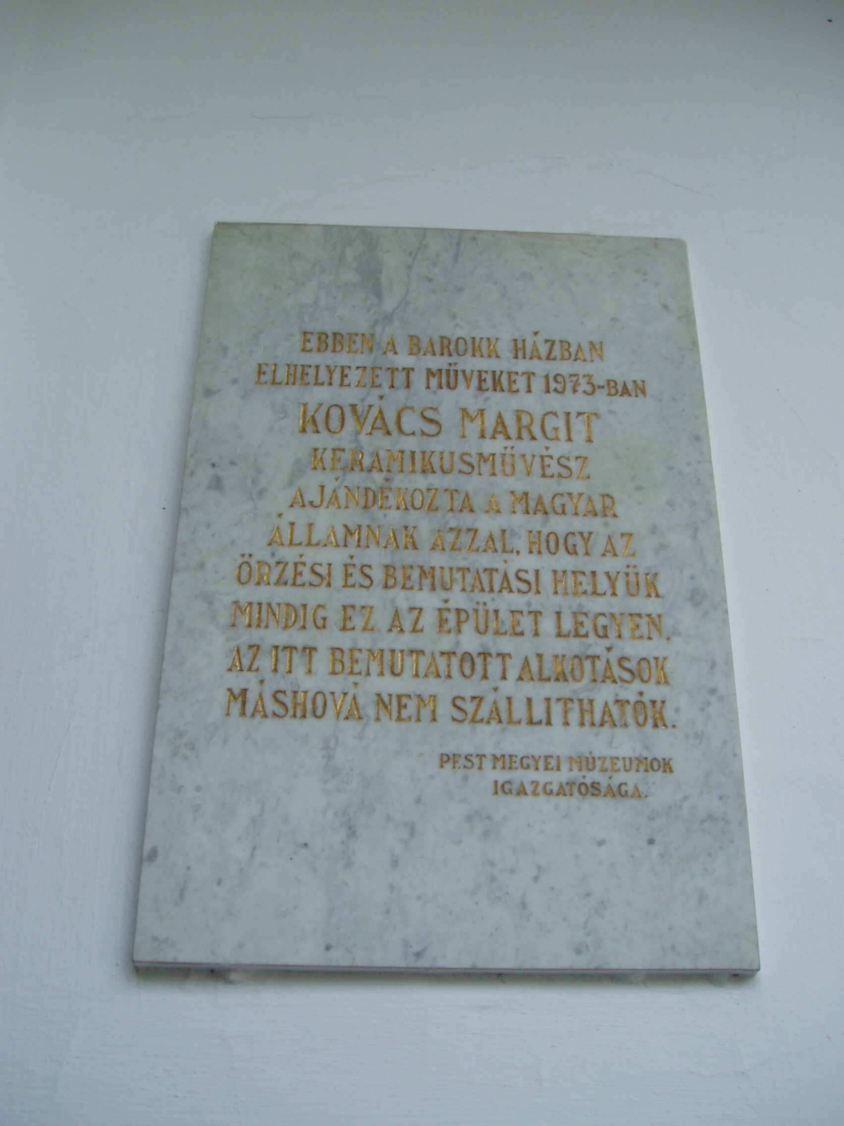 Nyilvános 1083 | 2019 | Szentendre, Vastagh Gy. utca 1. Kovács Margit Múzeum | Az 1759-ben emelt barokk stílusú épület előbb sóház, később plébánia, majd Dimsitz Vazul kereskedőháza, végül a Vastagh család lakóháza volt, mielőtt múzeumot alakítottak ki falai között. Kovács Margit (1902-77) keramikus, szobrász, a magyar kerámiaművészet egyik megújítója 1972-ben a múzeumnak adományozta életműve jelentős részét. Ezt mutatja be a kiállítás. Az épület múzeummá alakításakor a díszes barokk kapuzat mellett az 1929-es Korongos relief másolatát helyezték el. 1977-ben udvari épülettel bővítették a múzeumot. A legnagyobb alapterületű kiállító-helyiségben, a dongaboltozatos régi pincében az 1930-as, 1940-es években készült alkotások kaptak helyet, amelyekből a művész biblikus témájú művei emelkednek ki. Az emeleti galéria enteriőrje és fotódokumentációja Kovács Margit otthonának és műtermének állít emléket. A sajátos hangú alkotásoknak, a szépen kialakított múzeumi környezetnek köszönhetően éveken keresztül az országnak ebben a múzeumában fordult meg a legtöbb látogató. (Az épületbelsőben sajnos nem szabad fényképezni! K.K.) A fénykép 2005 szeptemberében készült. Felh. irod.: http://pmmi.hu/muzeumok/kovacsmargit/index.htm www.vendegvaro.hu |