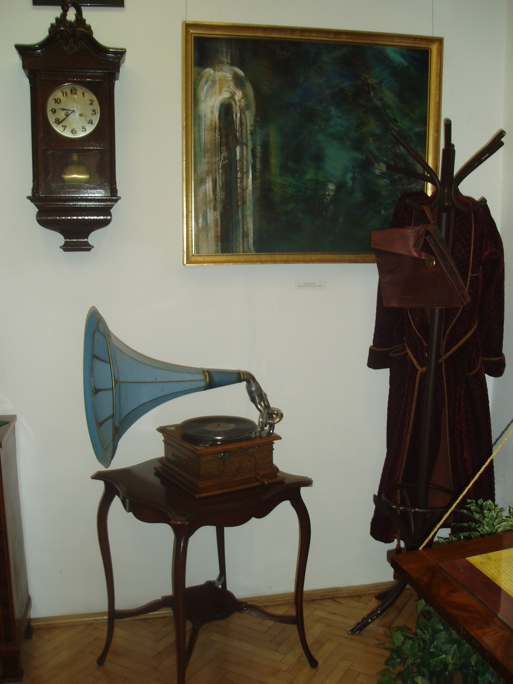 Nyilvános 1105 | 2052 | Siófok, Kálmán Imre sétány 5. | Ebben a vasútállomáshoz közeli házban született 1882-ben a magyar operett egyik legjelentősebb zeneszerzője, Kálmán Imre. Szülőházában — amelyet először 1955-ben jelöltek meg emléktáblával — 1970-ben özvegye, Kálmán Vera jelenlétében emlékszobát avattak. A mostani, gazdagabb anyagú emlékmúzeumot a zeneszerző születésének 105. évfordulója alkalmából, 1987. október 22-én nyitották meg. Jelenleg az emlékmúzeum a szülőház földszinti termeiben található, az emeleten kortárs képzőművészeti időszaki kiállításokat szoktak rendezni. Kálmán Imre számos személyes tárgyát állították itt ki enteriőr-szerűen, köztük bordó háziköntösét és kedves "daloló gép"-ét, amely mellett gyakran hallgatott zenét - talán éppen ebben a köntösben. A fénykép 2006 júliusában készült. Felh. irod.: Kálmán Imre Múzeum Siófok. Szerk. Koch József. Siófok, 2000 http://www.kalmanimre-muzeum.hu/ |
