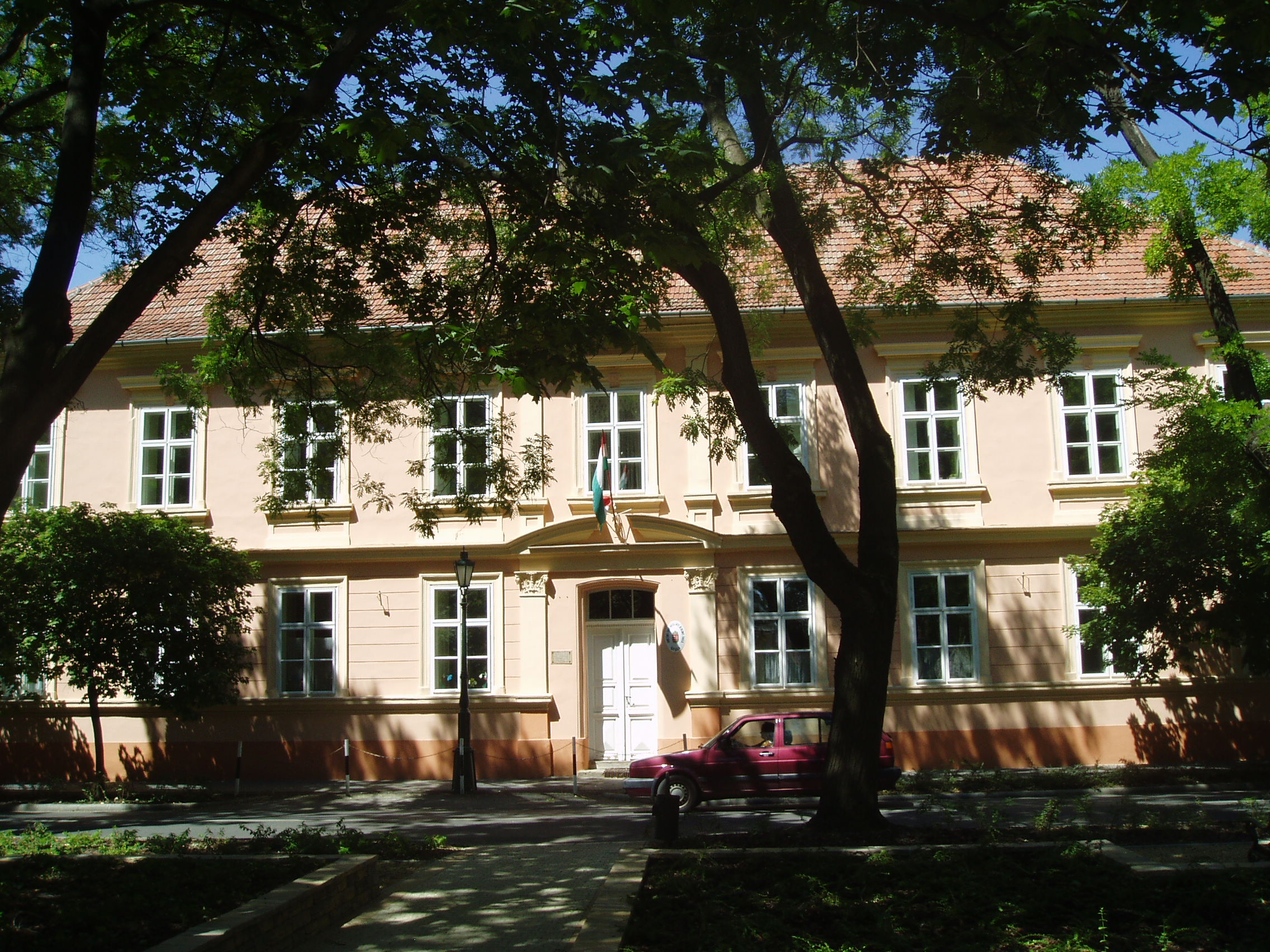 Nyilvános 906 | 1480 | Gyula, Petőfi tér 5. Római Katolikus Általános Iskola | Az épület története a török előtti időkre nyúlik vissza. Déli szárnyának földszinti része már 1518-ban szerepel a város történetében: ez volt a város fürdőháza. A törökök kibővítve rituális fürdőnek használták. Kiűzésük az akkor kupolákkal fedett épületet a reformátusok kapták meg imaháznak. Melléje Wenckheim József földesúr iskolát építtetett, amely később megkapta az egykori fürdőházat is. Az 1800-as évek első harmadában két ízben is emeletráépítéssel bővítették az egyesített épületet, ekkor alakult ki mai, klasszicista arculata. 1965-ben a 48-as utca felől oda nem illő szárnnyal bővítették. 1819/20-ban ebbe az iskolába járt a kis Erkel Ferenc, s itt tanult Pálffy Albert is. E falak között alapította meg a város első közkönyvtárát 200 kötetes adományával Mogyoróssy János. 1849-ben Damjanich kórházának egy részlege működött benne. 1857-ben itt nyitották meg az első gyulai rajziskolát, melynek tanára, Karl Fischer bécsi festő volt a fiatal Munkácsy Mihály első tanára. A fénykép 2007 júliusában készült. Felh. irod.: Czeglédi Imre: Gyula útikalauz. 2. jav., bőv. kiad. Gyula, 1995 |