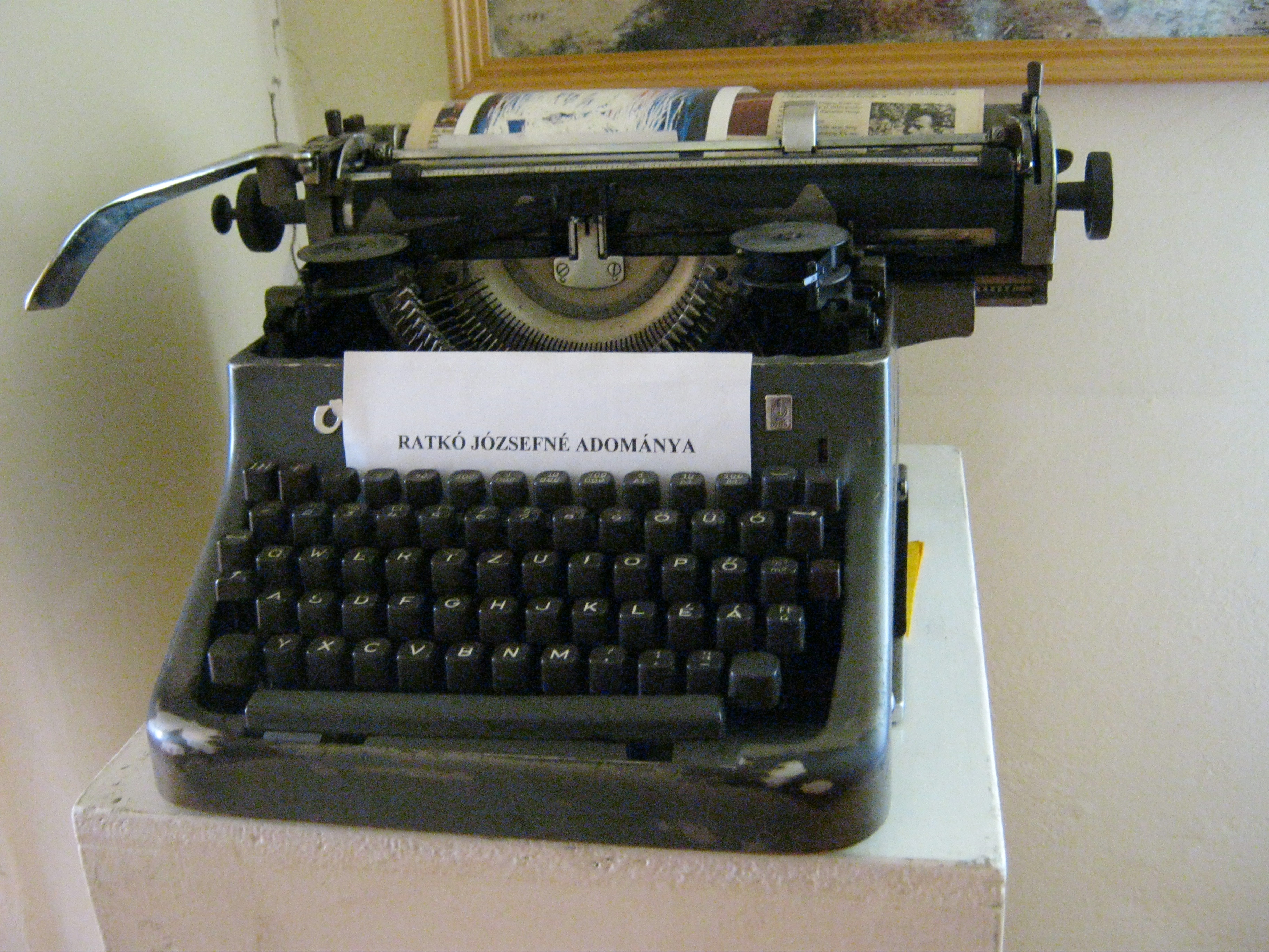 Nyilvános 912 | 1351 | Nagykálló, Szabadság tér 6. | Az 1700-as évek vége felé épült klasszicista eredetű épület Korányi Frigyes szülőháza. A magyar orvostörténet nagy alakja itt látta meg a napvilágot 1828. december 10-én. Édesapja, Kornfeld Sebald tehetős izraelita orvos volt. Szülőháza 1971 óta emlékházként működik eredeti bútorokkal, relikviákkal s más, Kálló életéhez kapcsolódó tárgyakkal. A képen Ratkó József költő írógépe látható. Ratkó rövid nyíregyházi működés után 1964-ben a nagykállói városi könyvtár igazgatója lett. Nagykállón hunyt el 1989-ben, a városi temetőkertben nyugszik. Felh. irod.: Harsányi Gézáné: Kálló kincsei. Nagykálló, 2007 |