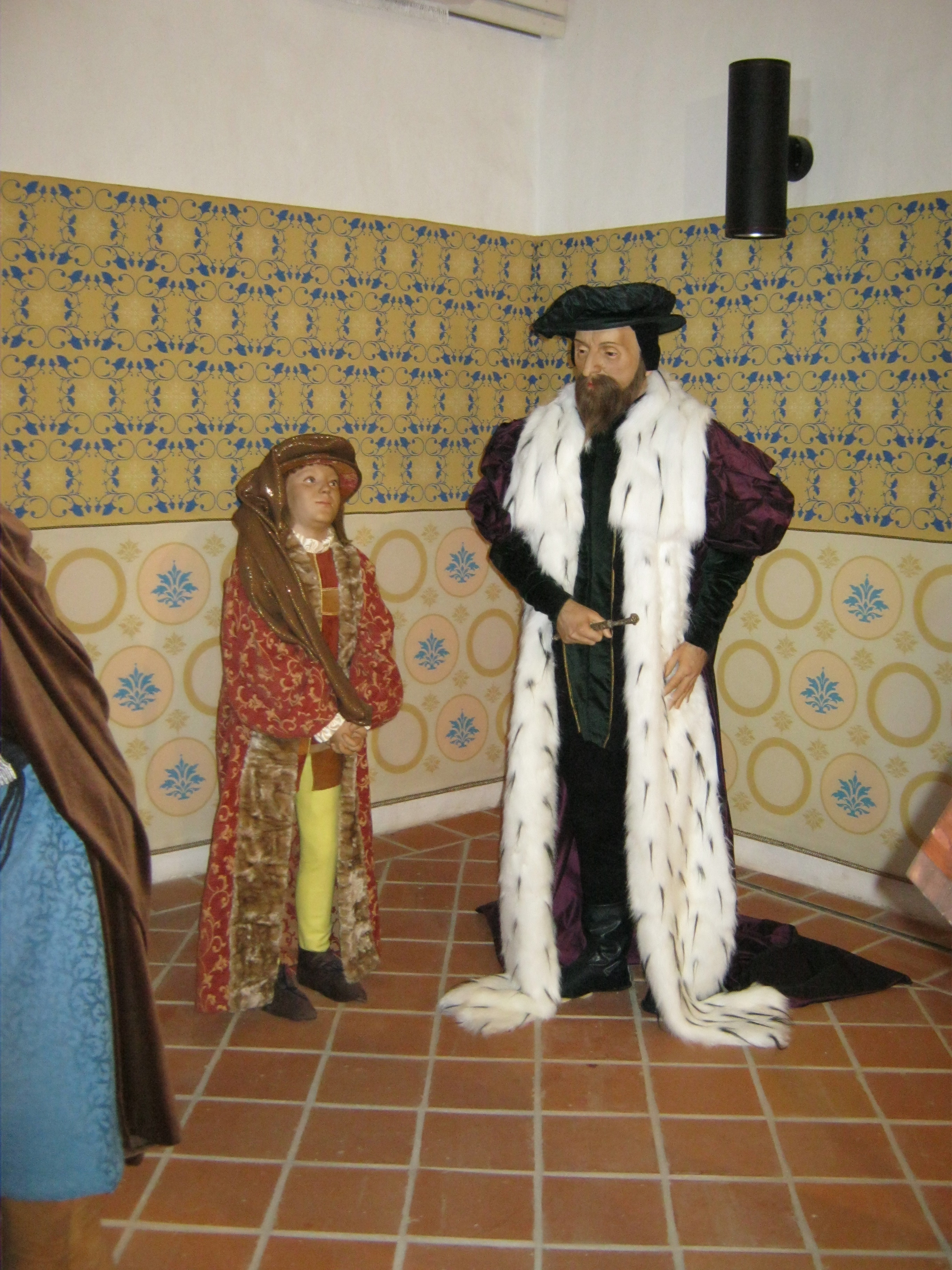 Nyilvános 890 | 1298 | Nyírbátor, Vár utca 1. Báthori várkastély | A Báthoriak várkastélyának többször átalakított egyetlen megmaradt épületét a közelmúltban állították helyre. Pincéjében reneszánsz étterem látogatható, földszintjén és emeletén a Báthori Panoptikum 45 élethű és korhű viaszfigurában mutatja be érzékletesen a jeles nemesi család és Nyírbátor történetét. A figurák tervezője és készítője Megyeri János szobrászművész. A megtekintést olvasható és hallgatható kalauzolás kíséri. A kiállítást a kenyérmezei csata 530. évfordulóján, 2009.október 13-án adták át. Az 1479-ben a törökkel vívott csata egyik hőse Báthori István volt. A képen a kis János Zsigmond és I. Ferdinánd király figurái. Felh. irod.: Látnivalók Szabolcs-Szatmár-Bereg megyében. Miskolc, Well-PRess, 1999 www.bathorivarkastely.hu A fénykép 2010 augusztus elején készült. |