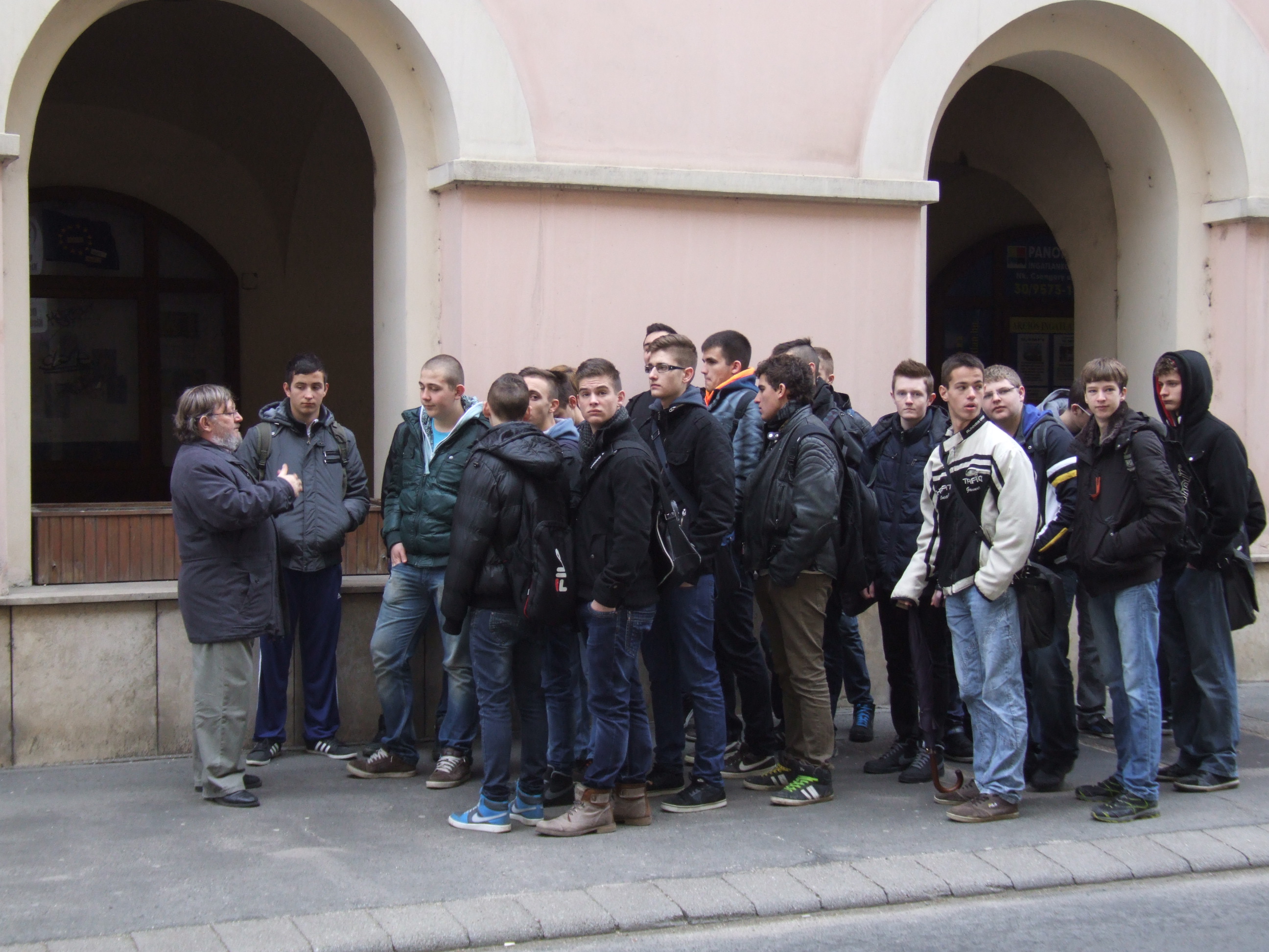 2014.03.03. Cserháti iskolások (10.b) a Városházánál 12.JPG