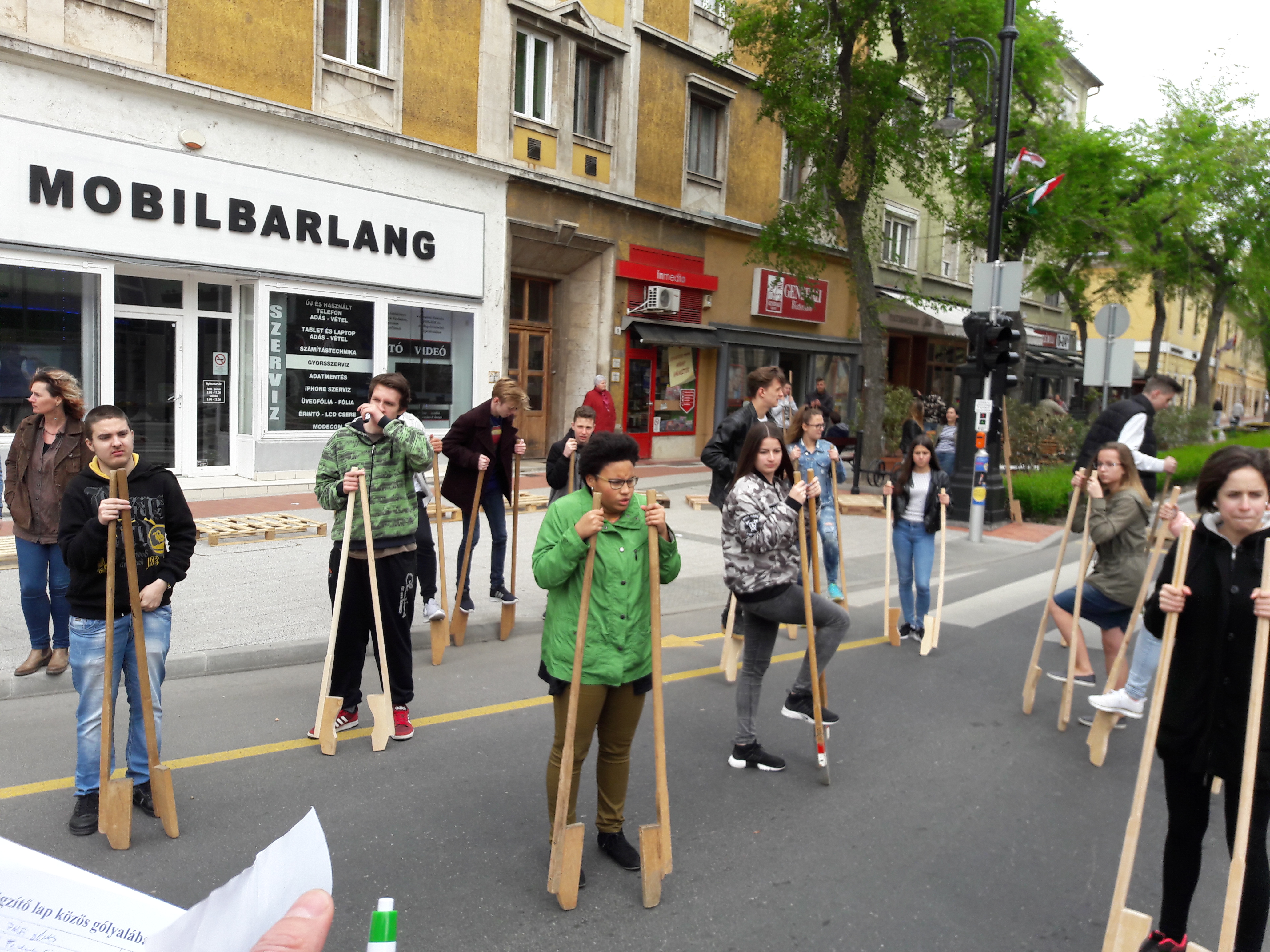 2017.04.27. Tömeges gólyalábra állás a Fő út - Ady u. kereszteződésében